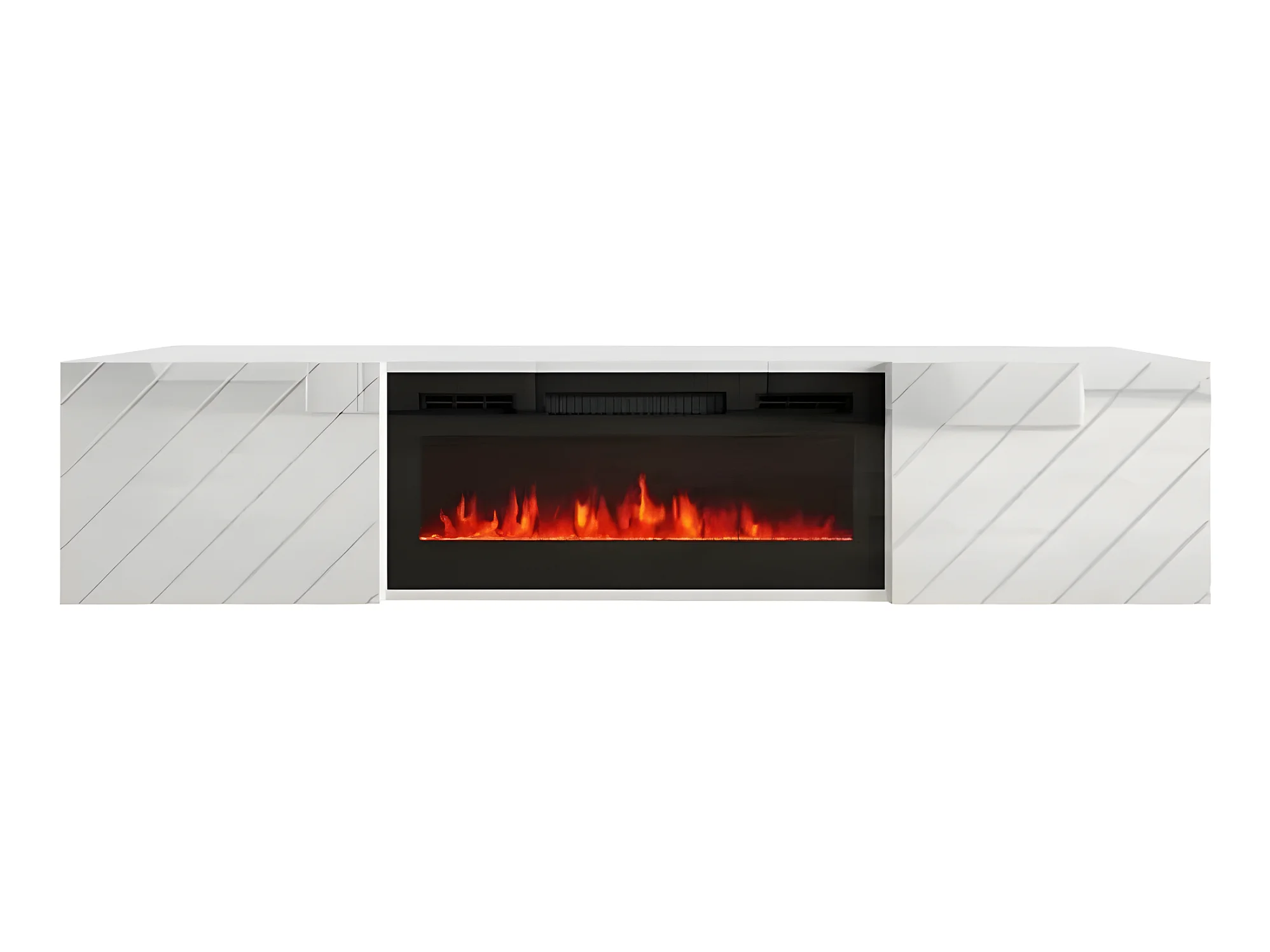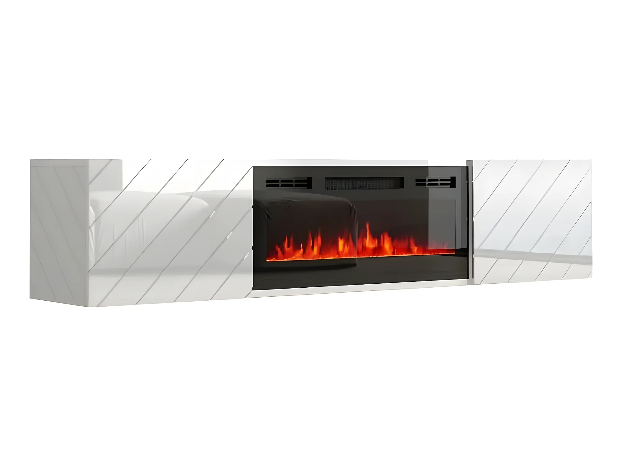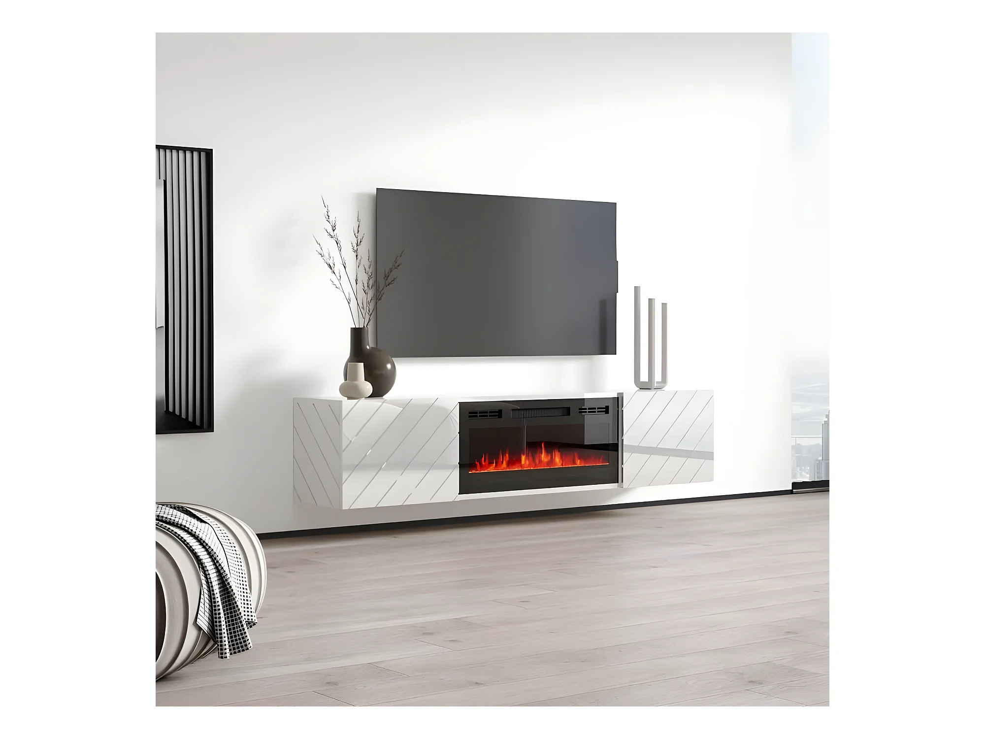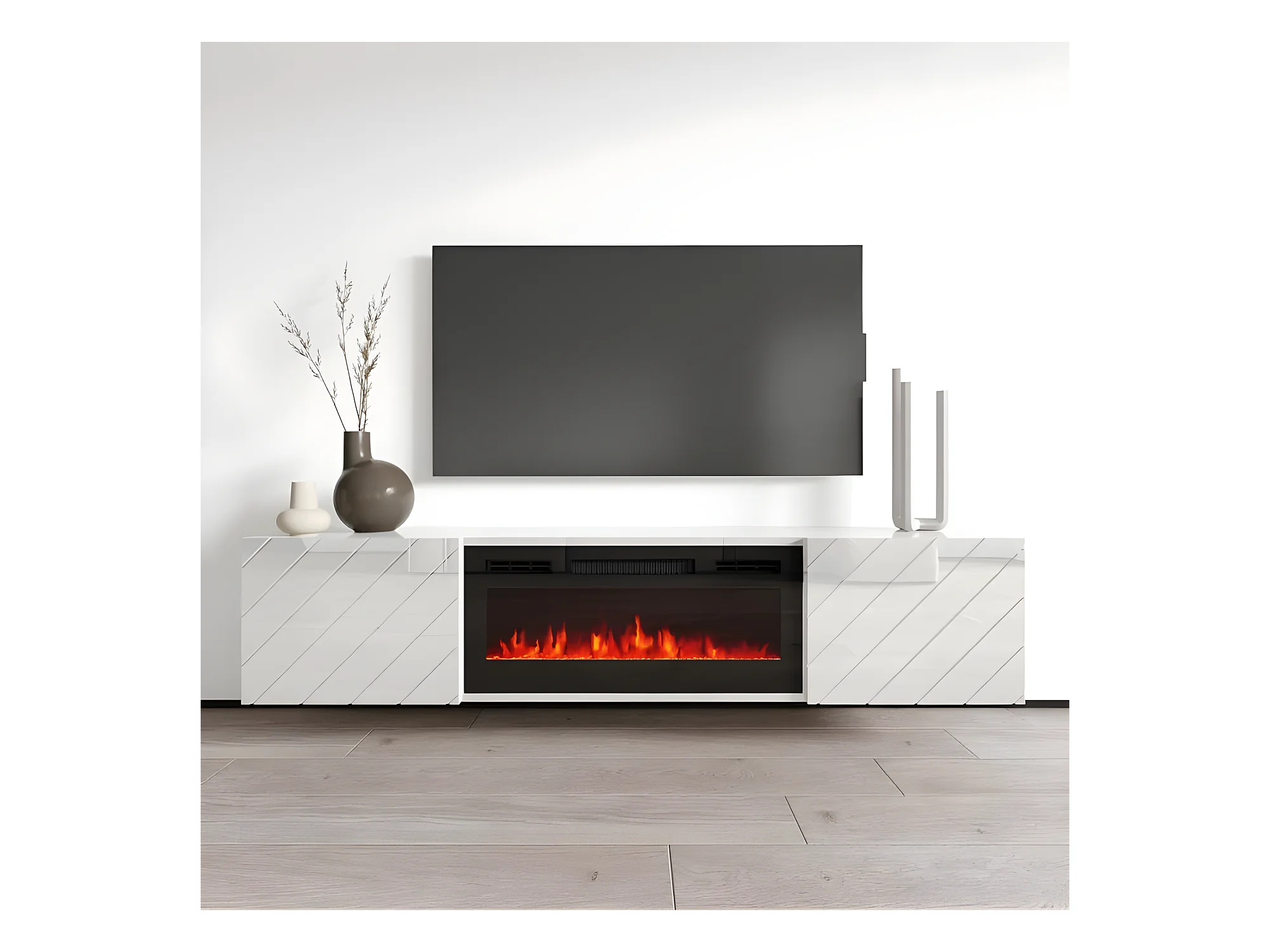 Meuble TV 183x38x35 cm blanc brillant/blanc mat ROTA avec cheminée intégrée noir meuble Hi-fi mural