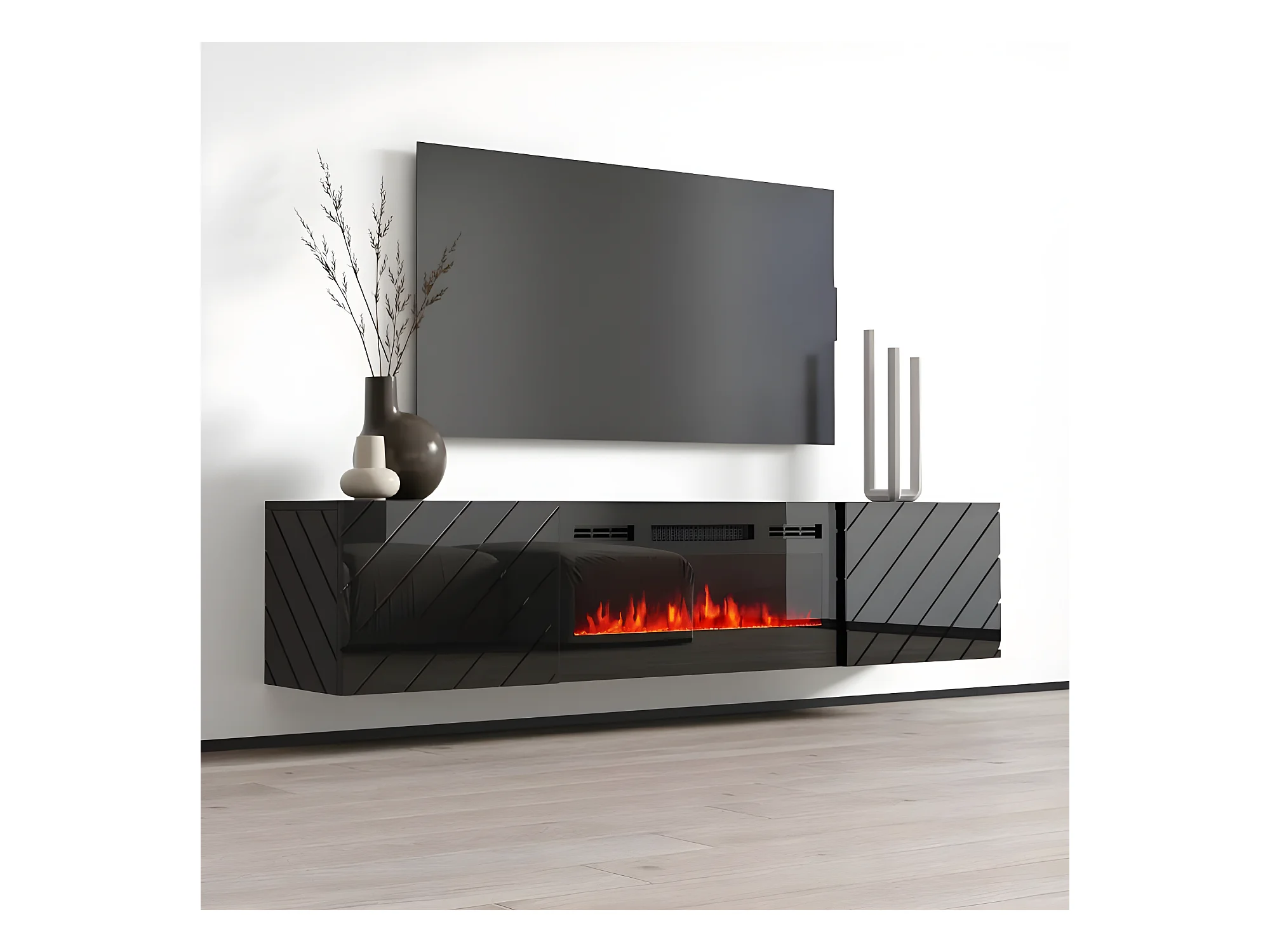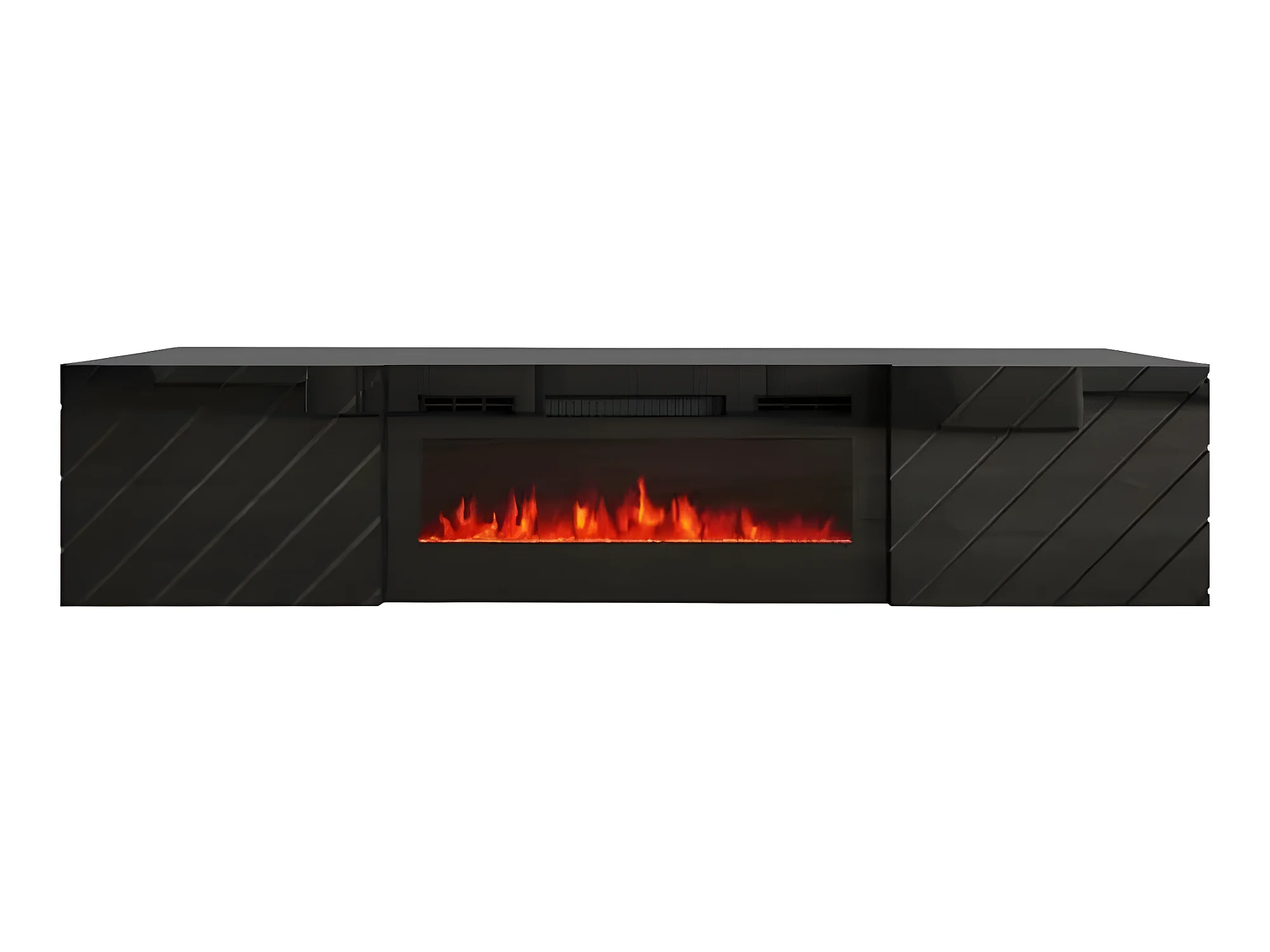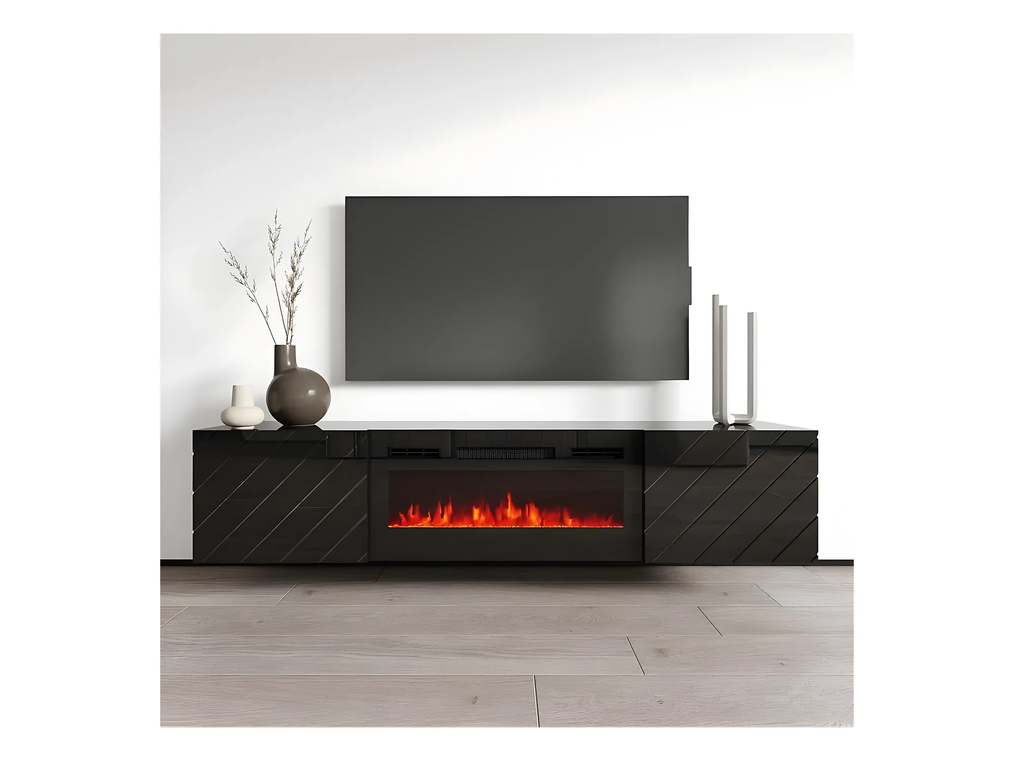 Meuble TV 183x38x35 cm Noir brillant/noir mat ROTA avec cheminée intégrée noire meuble Hi-fi mural