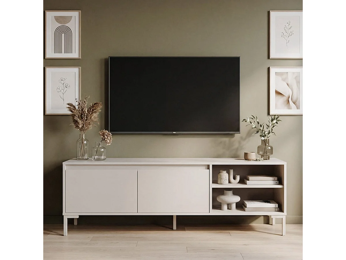 Meuble TV 2 portes 2 niches beige 150 cm - Ronda
