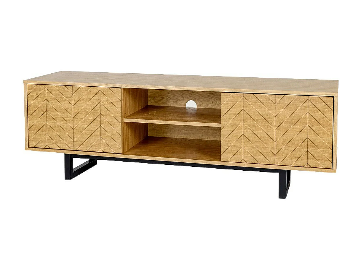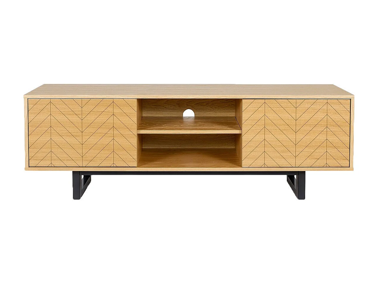 Meuble TV 2 Portes 2 Niches "Camden" 150cm Chêne & Noir