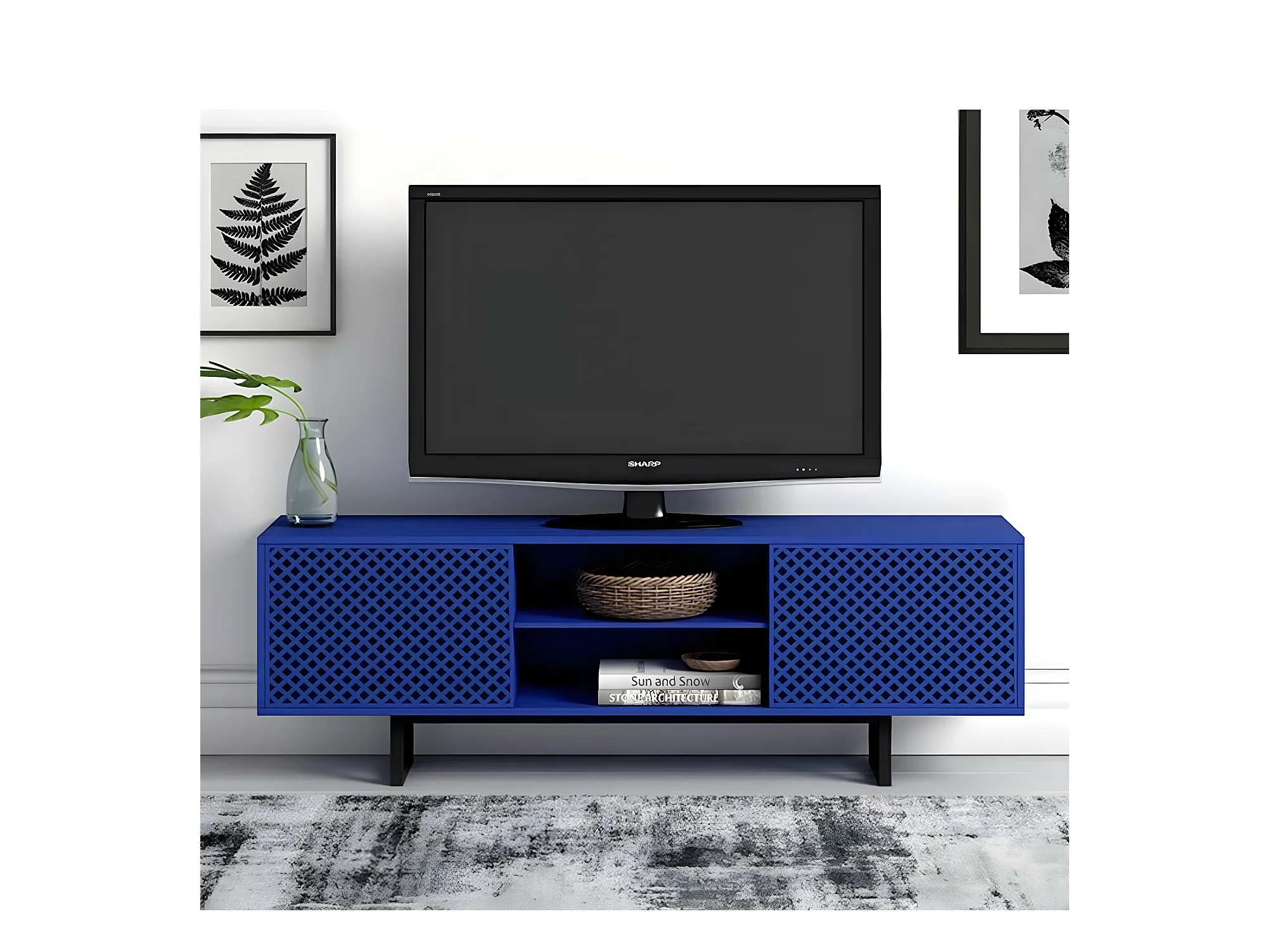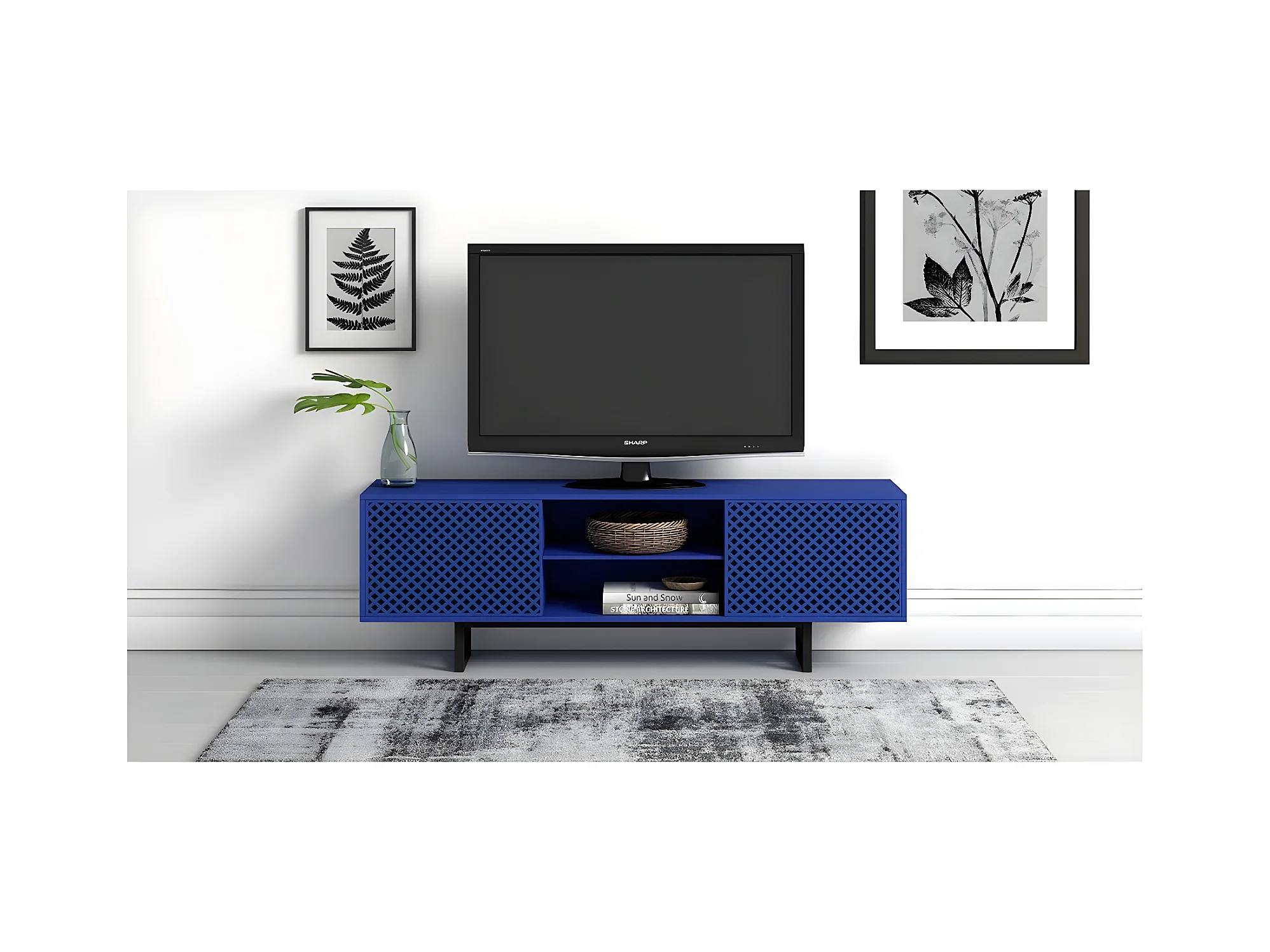 Meuble TV 2 Portes 2 Niches Diamant "Camden" 150cm Bleu