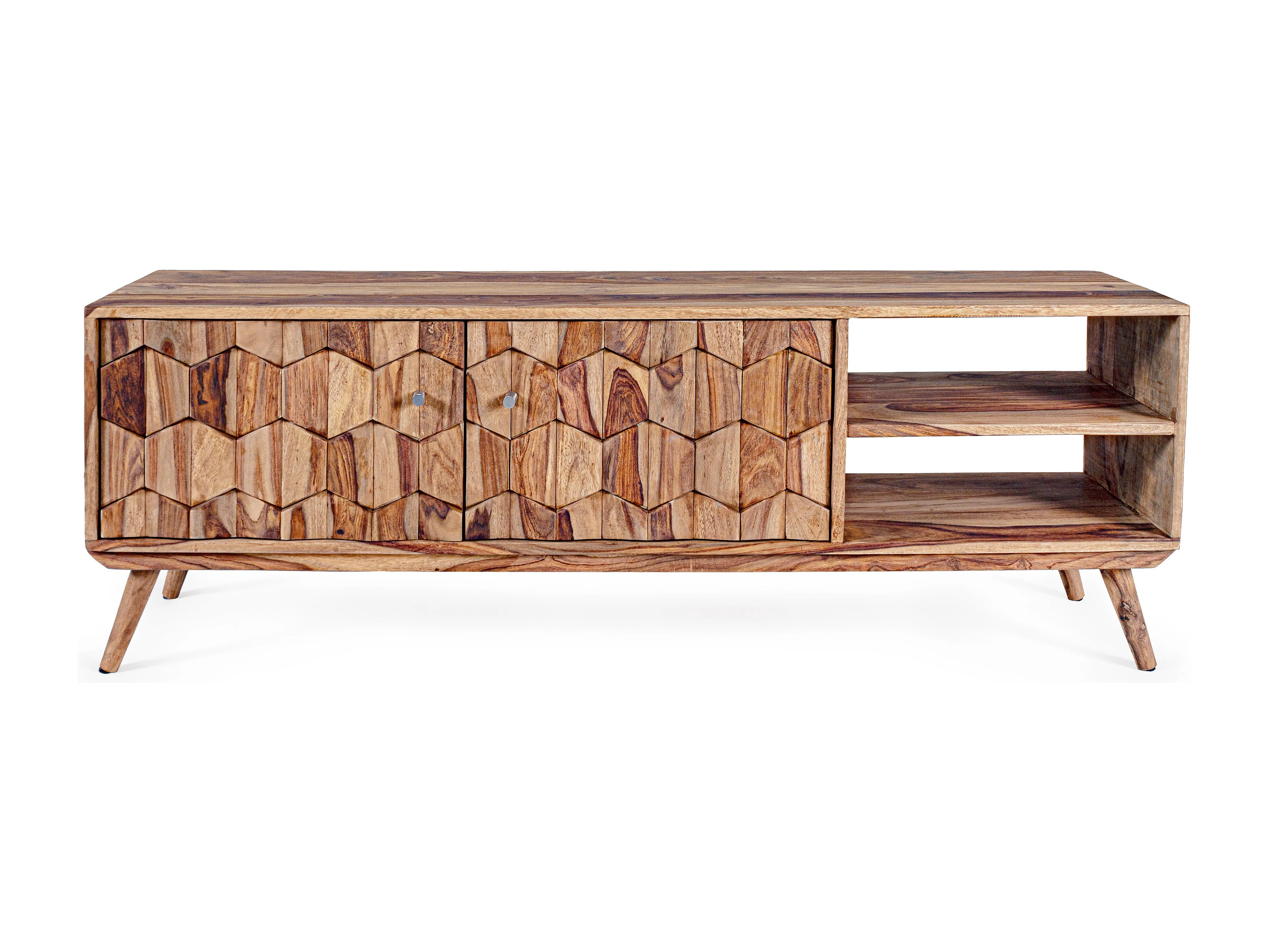 Meuble TV 2 portes 2 niches en bois de sheesham naturel Kany 177cm