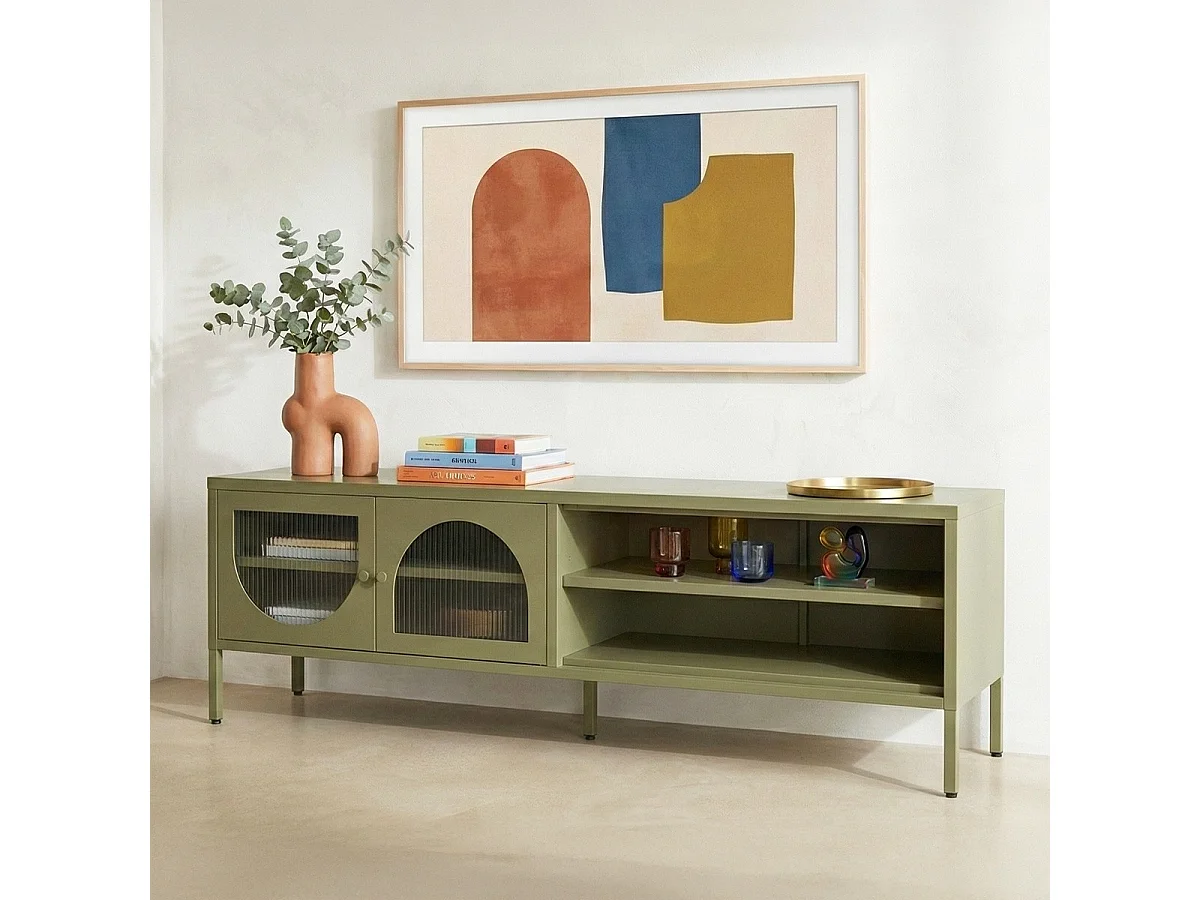 Meuble TV 2 portes 2 niches en métal vert 160 cm - Ysia