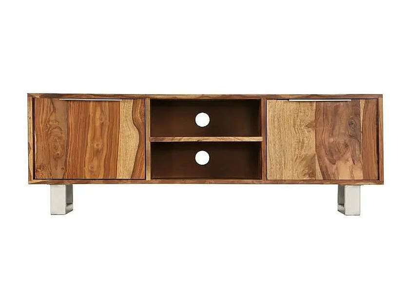 Meuble TV 2 portes 2 niches sesham massif clair et métal Bouka