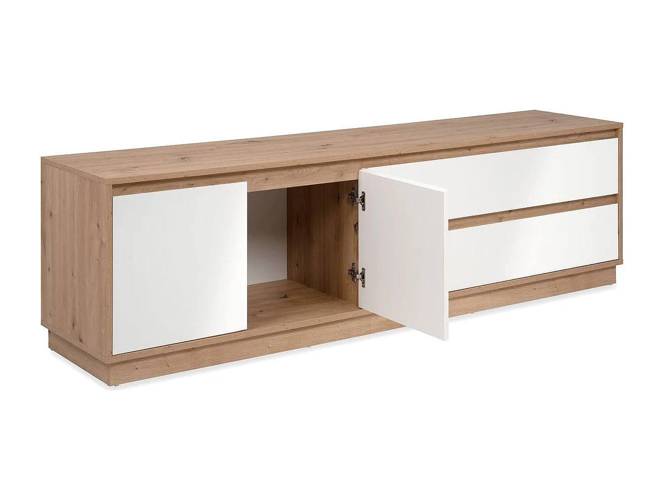 Meuble TV 2 portes 2 tiroirs effet Chêne et blanc brillant 172 cm - Nalen