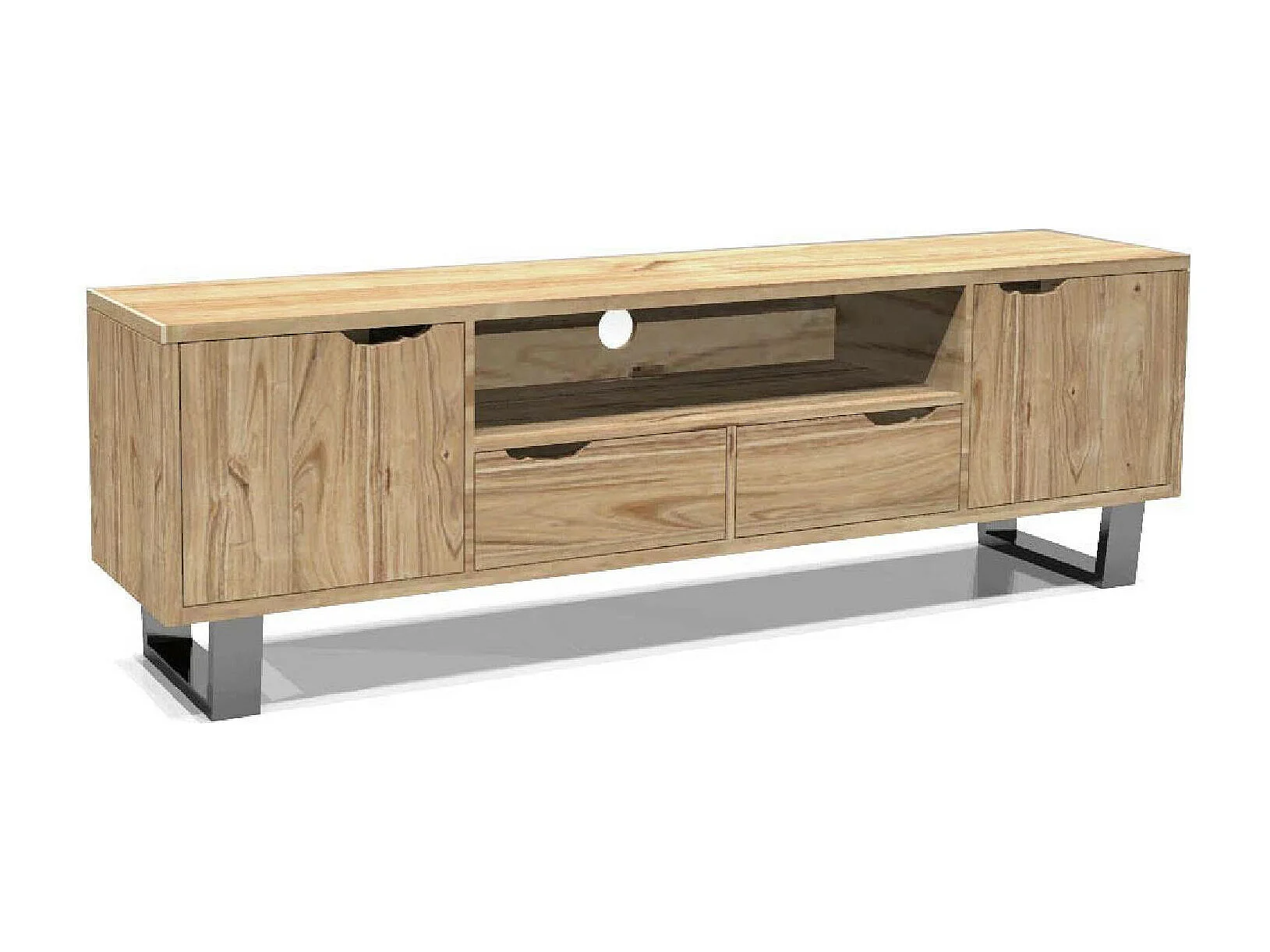 Meuble TV 2 portes 2 tiroirs en acacia massif | Acacia Forest