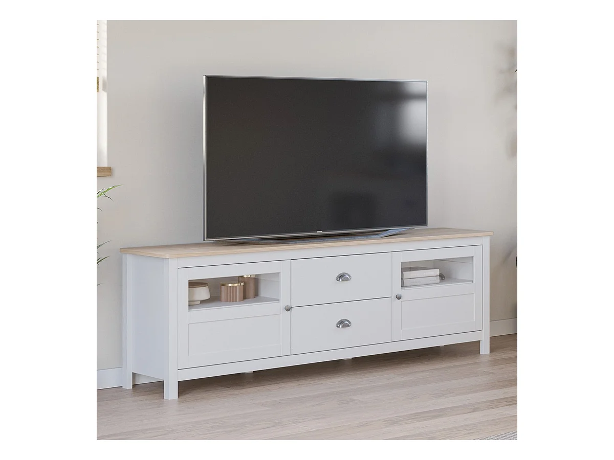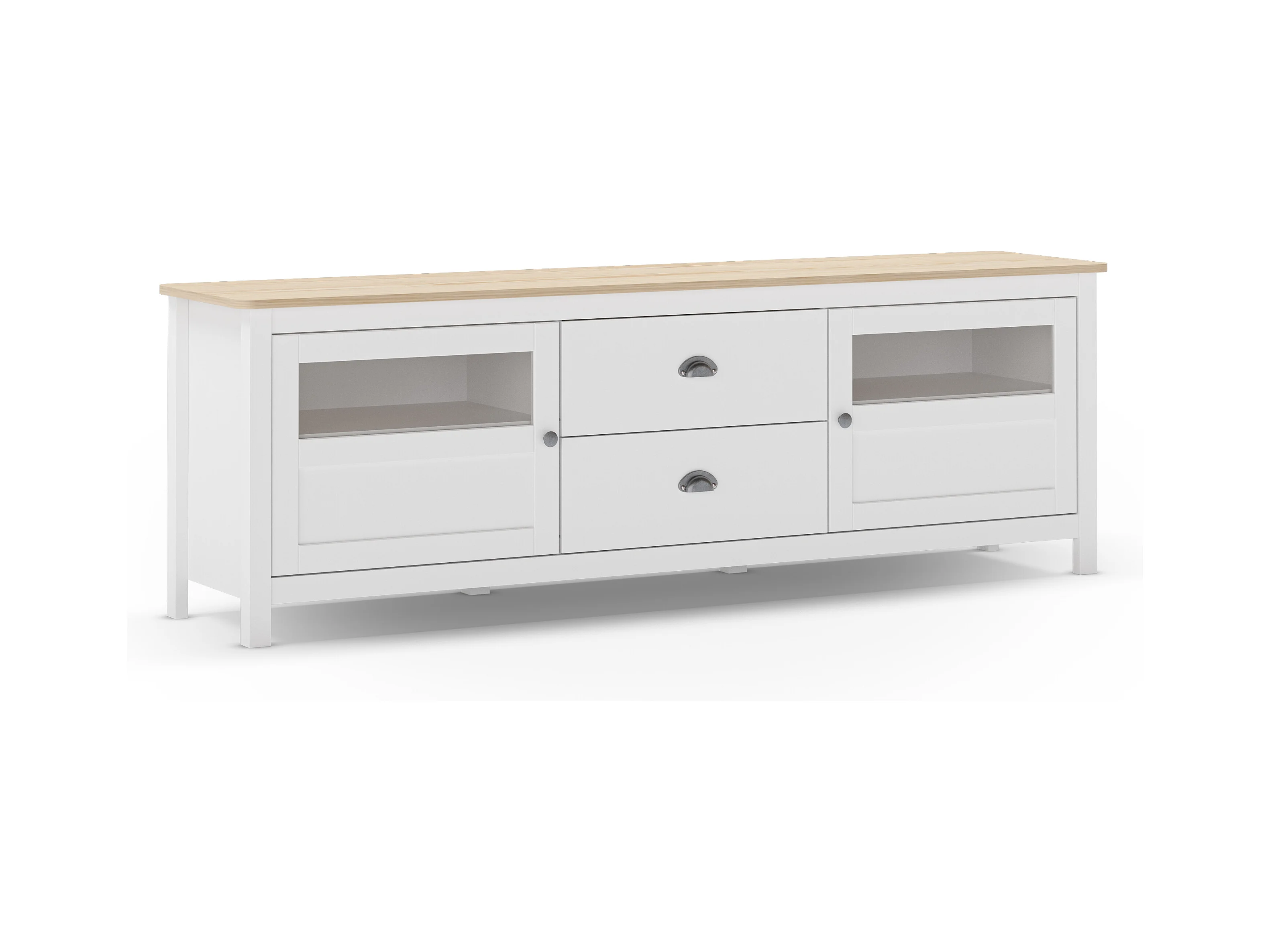 Meuble TV 2 portes 2 tiroirs en bois massif blanc 180 cm - Macha