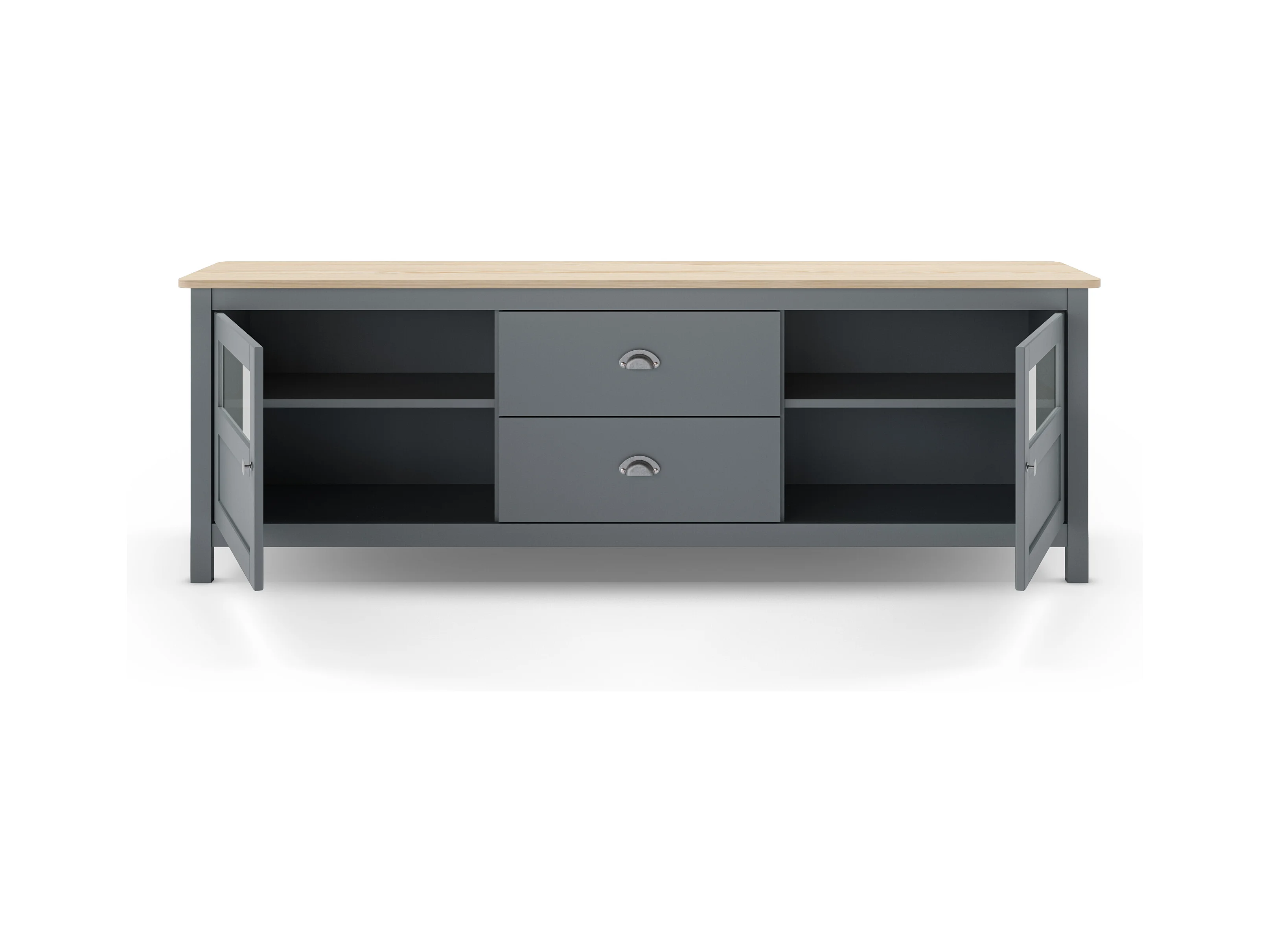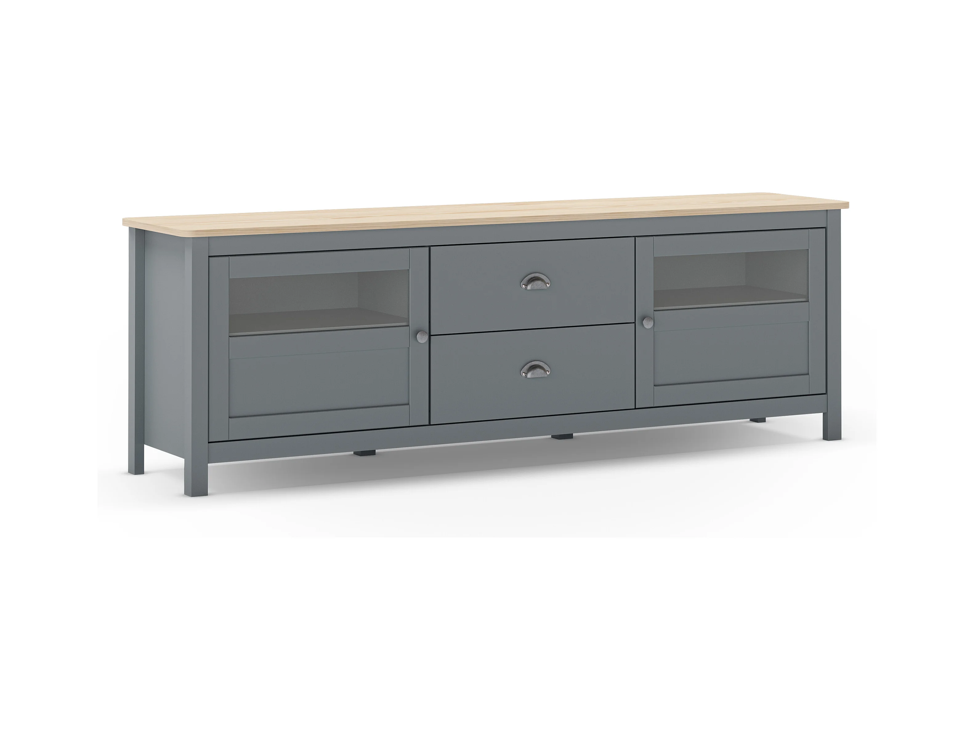 Meuble TV 2 portes 2 tiroirs en bois massif vert kaki 180 cm - Macha