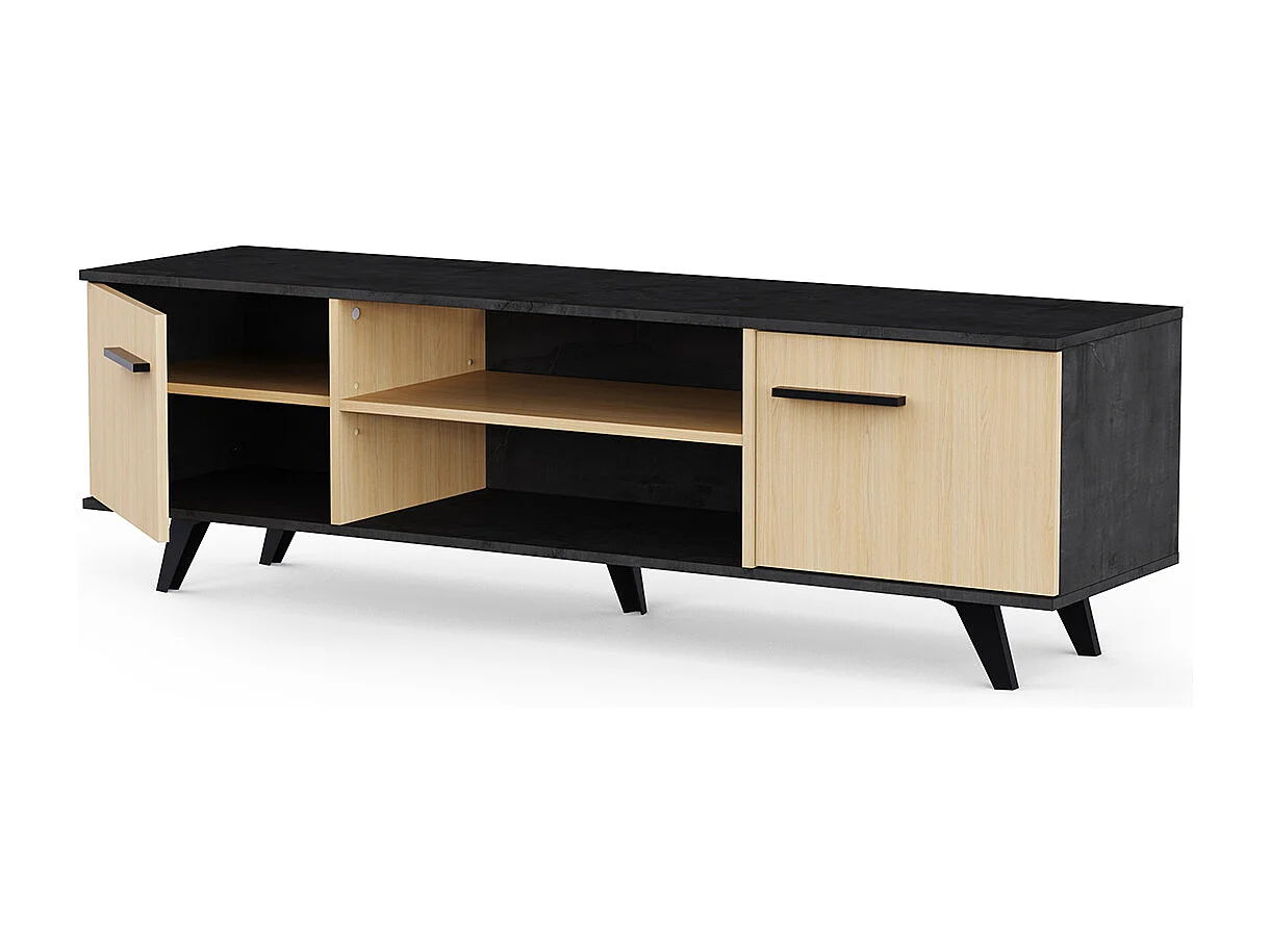Meuble TV 2 portes avec rangement couleur chêne / anthracite - Largeur 151,4 x Profondeur 39,3 x Hauteur 46,2 cm