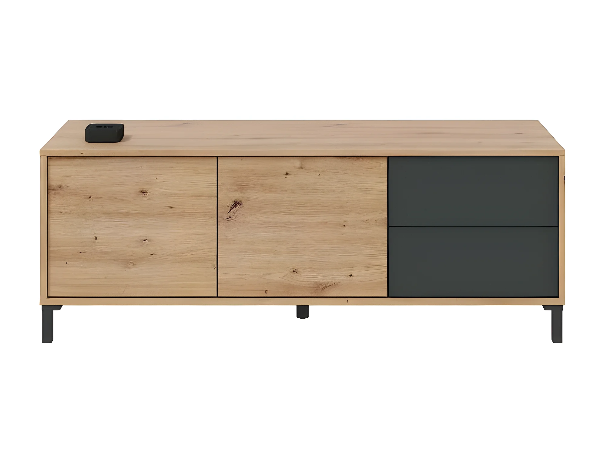 Meuble TV 2 portes Béton/Chêne - CALIA - L 130 x l 41 x H 47 cm