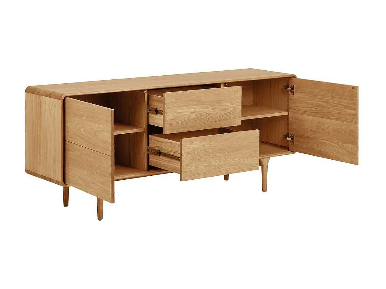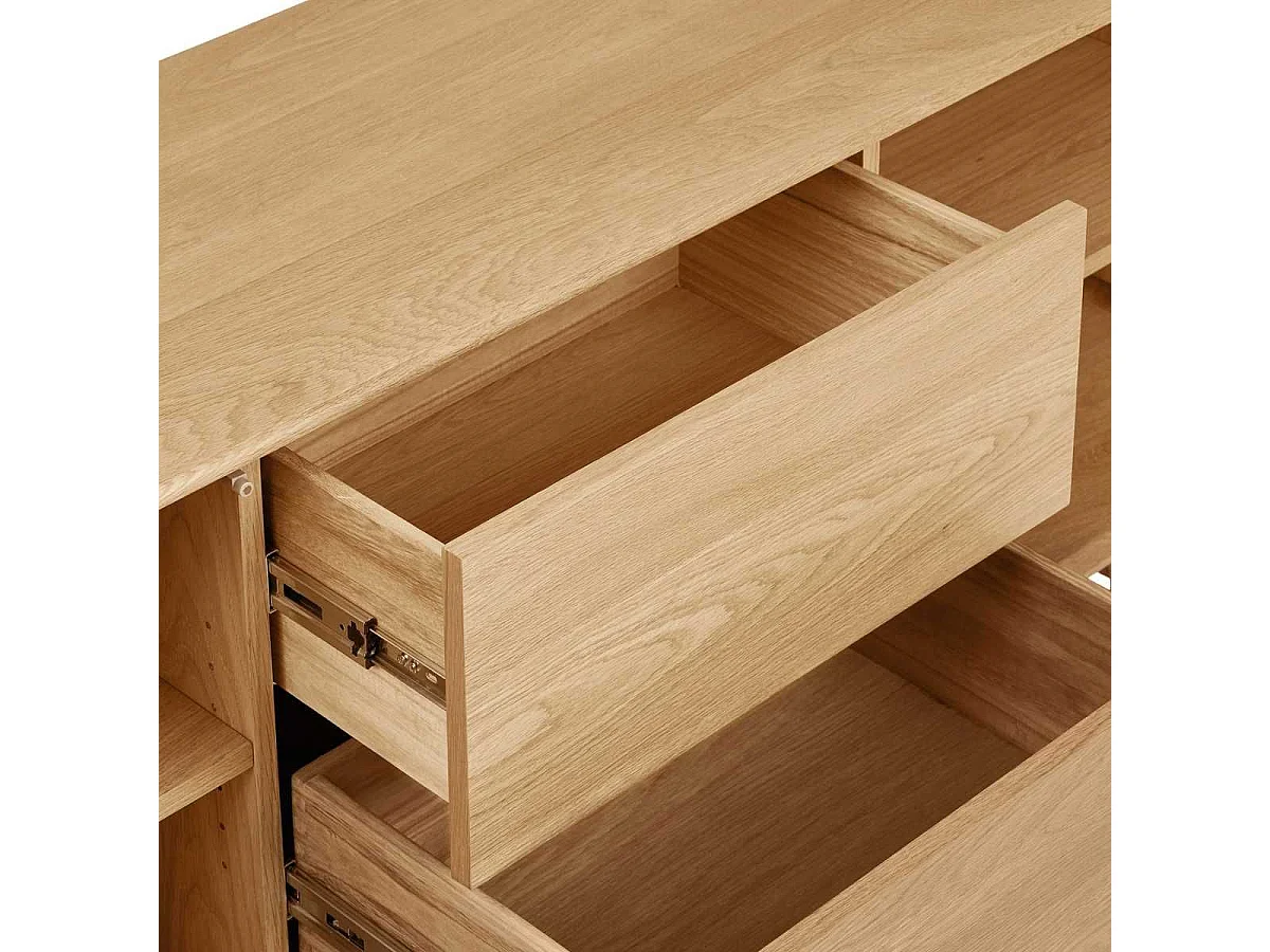Meuble TV 2 portes et 2 tiroirs cadre en chêne massif façades en placage de chêne - GARANCE