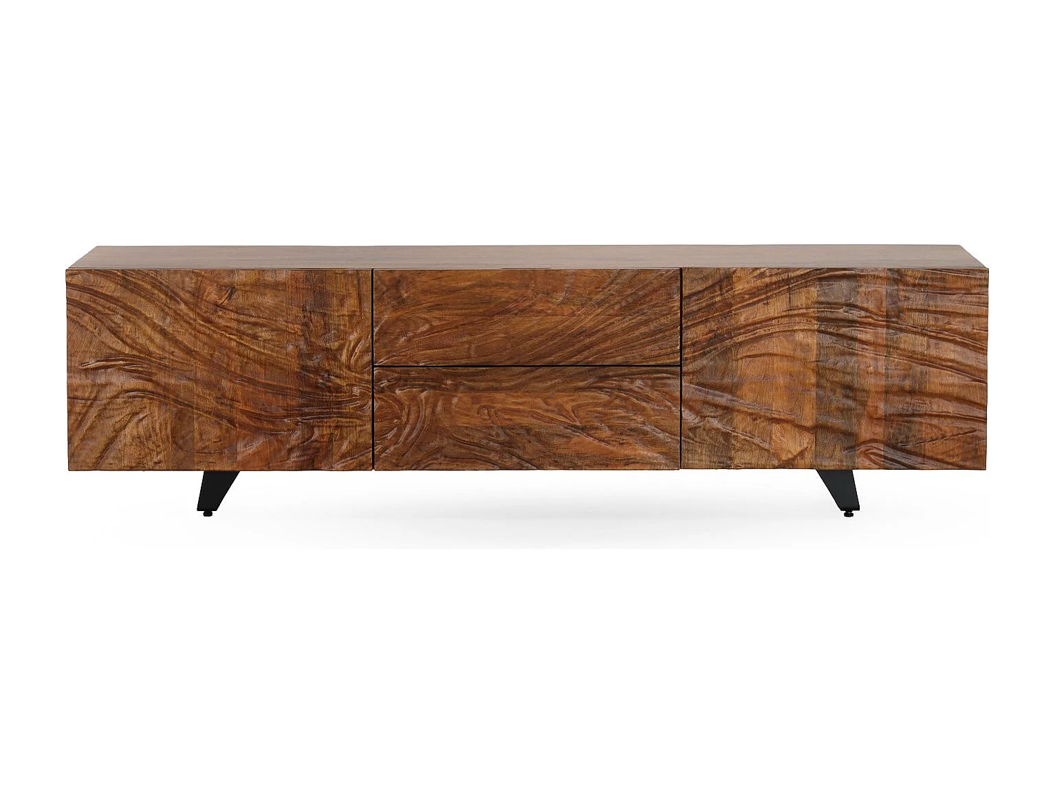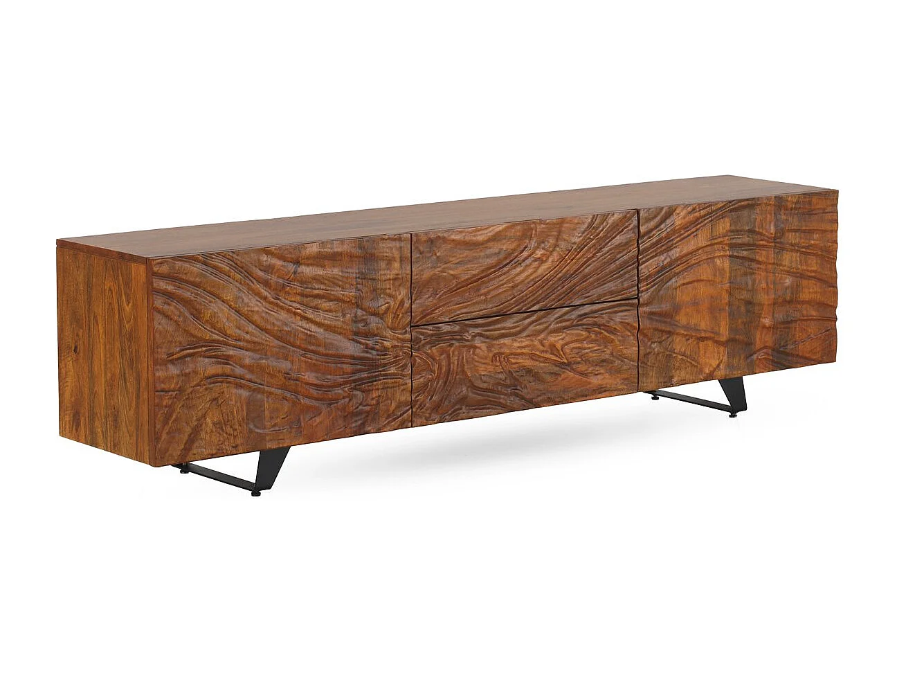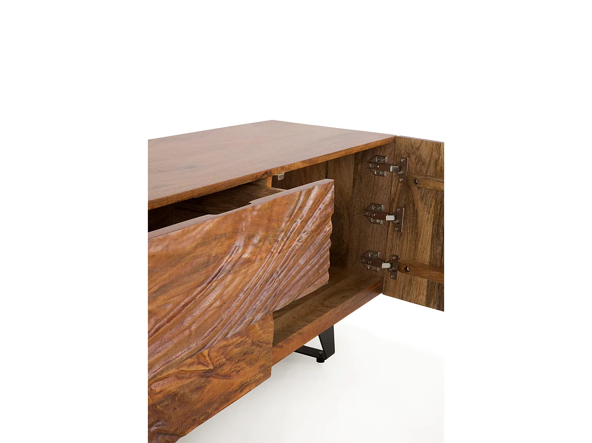 Meuble TV 2 portes et 2 tiroirs en bois massif de manguier