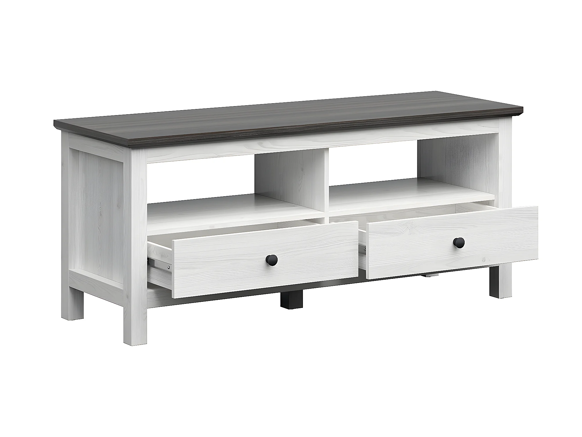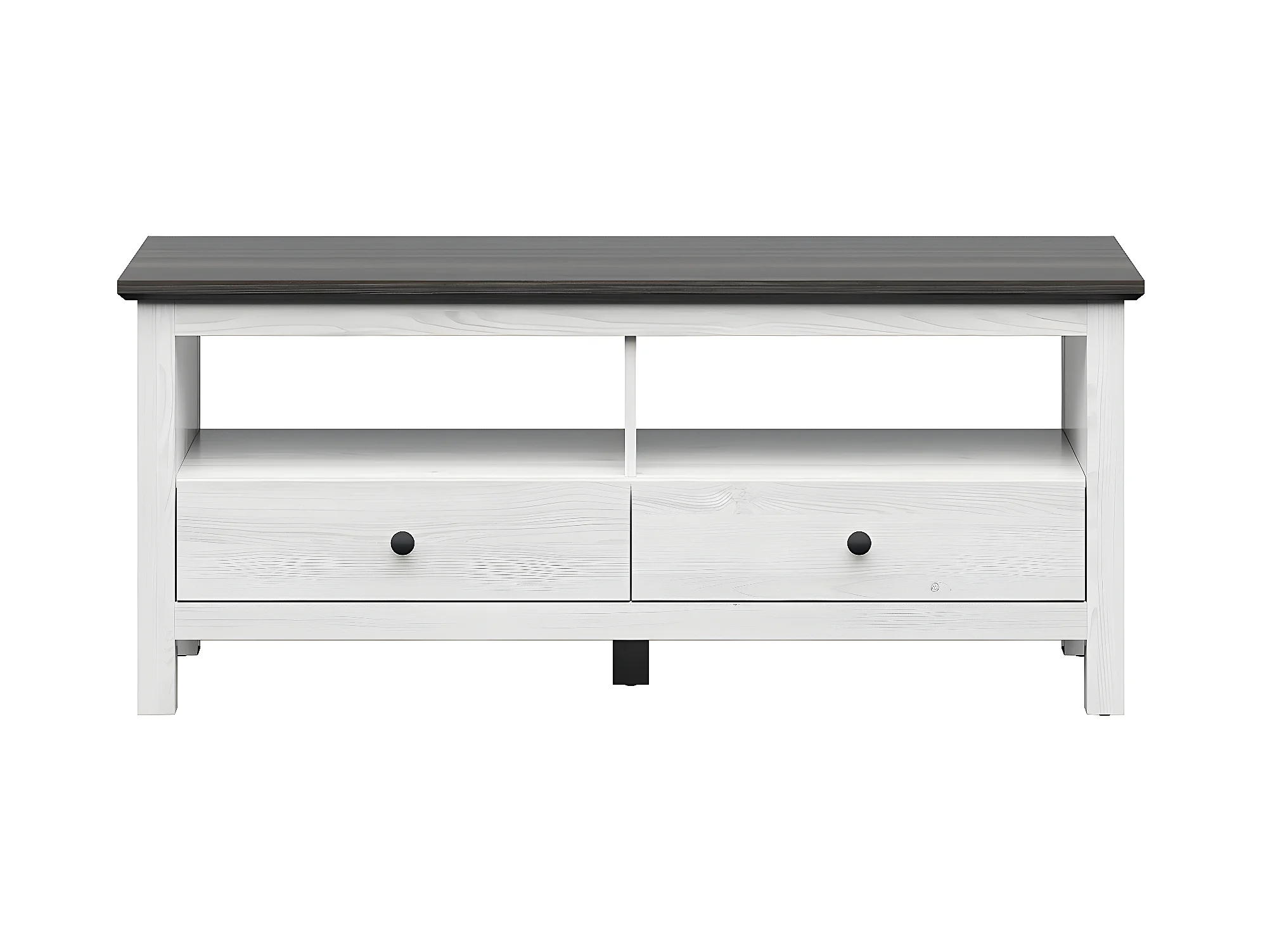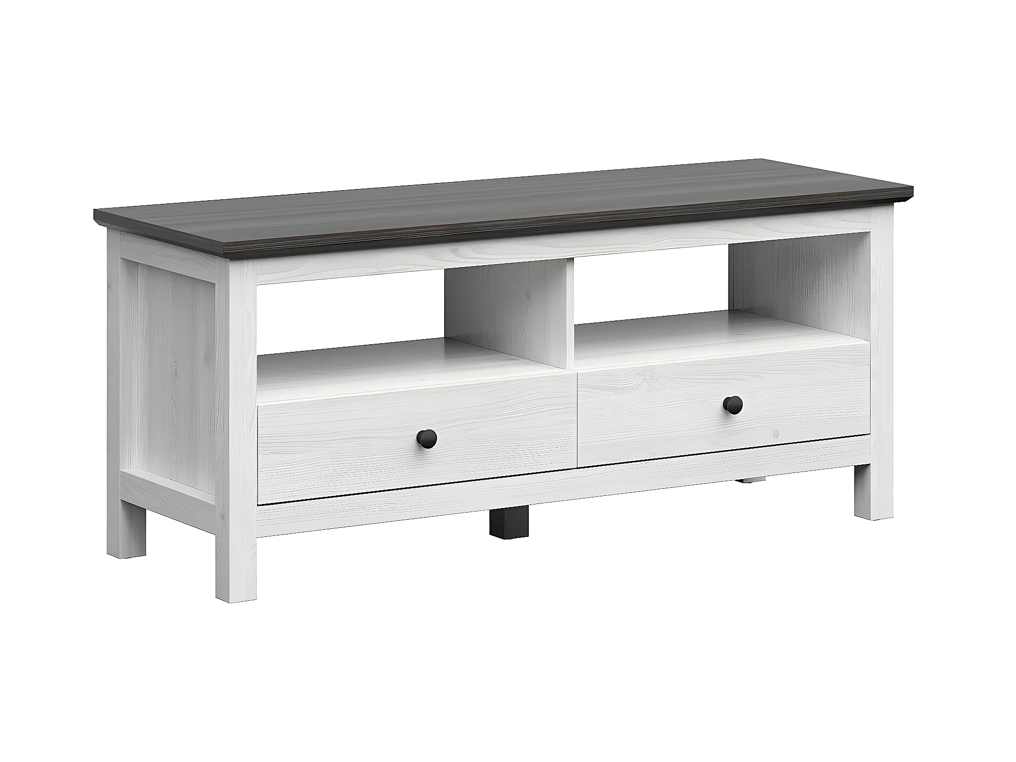 Meuble TV 2 tiroirs 2 niches 137 cm Duck Blanc et Bois foncé