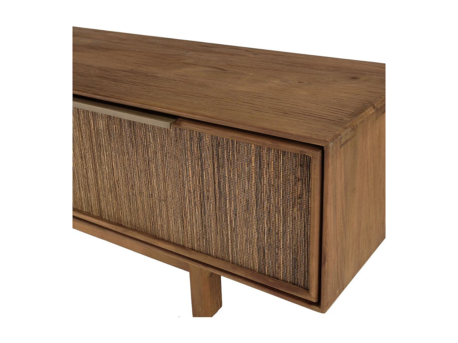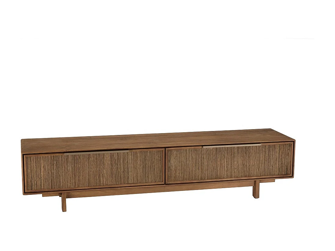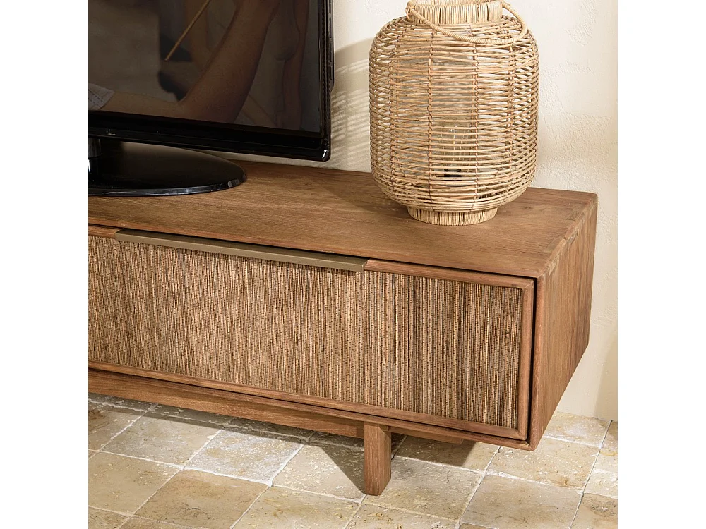 SIXTINE - Meuble TV 2 tiroirs en bois teck recyclé et tissage naturel