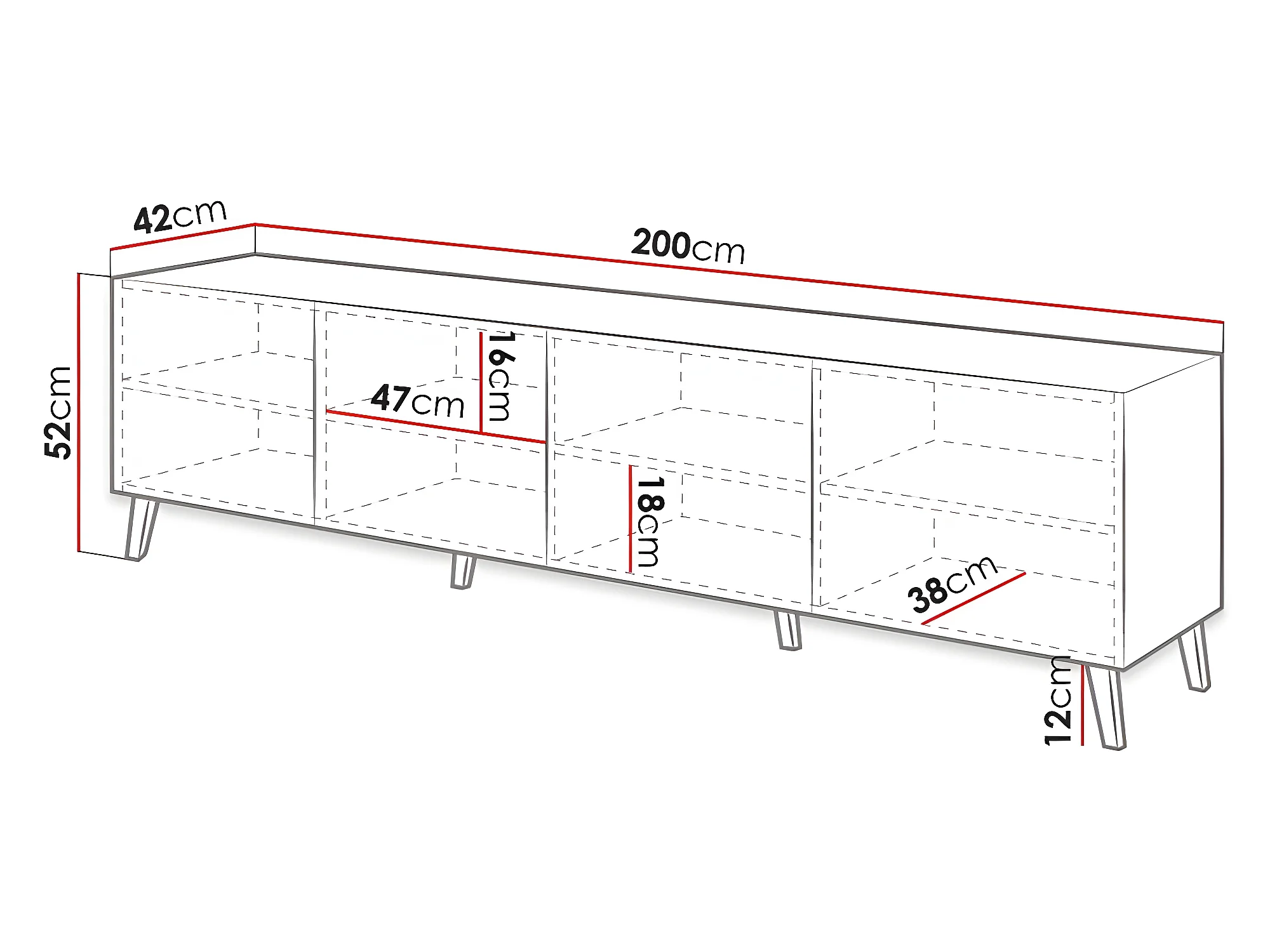 Meuble TV 200x52x42 cm blanc ABI meuble Hi-fi luxueux sideboeard sur pied