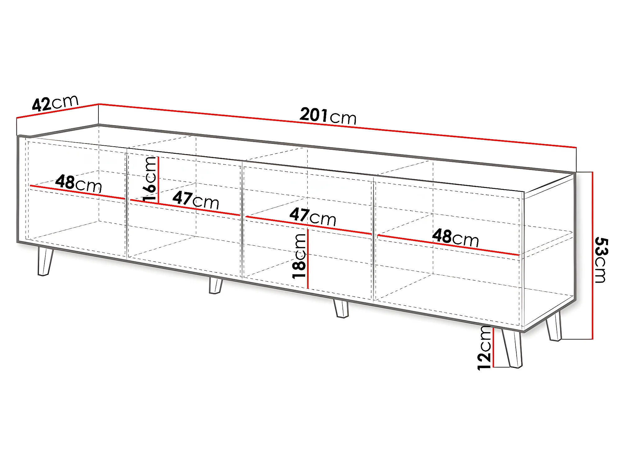 Meuble TV 200x52x42 cm noir mat/noir + chêne artisanal VISO meuble Hi-fi luxueux sur pieds