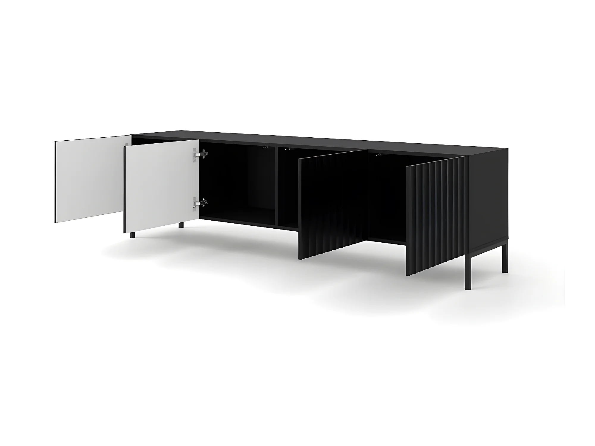 Meuble TV 200x56x42 cm noir mat VAGUE meuble Hi-fi luxueux sur pieds noir avec 4 portes