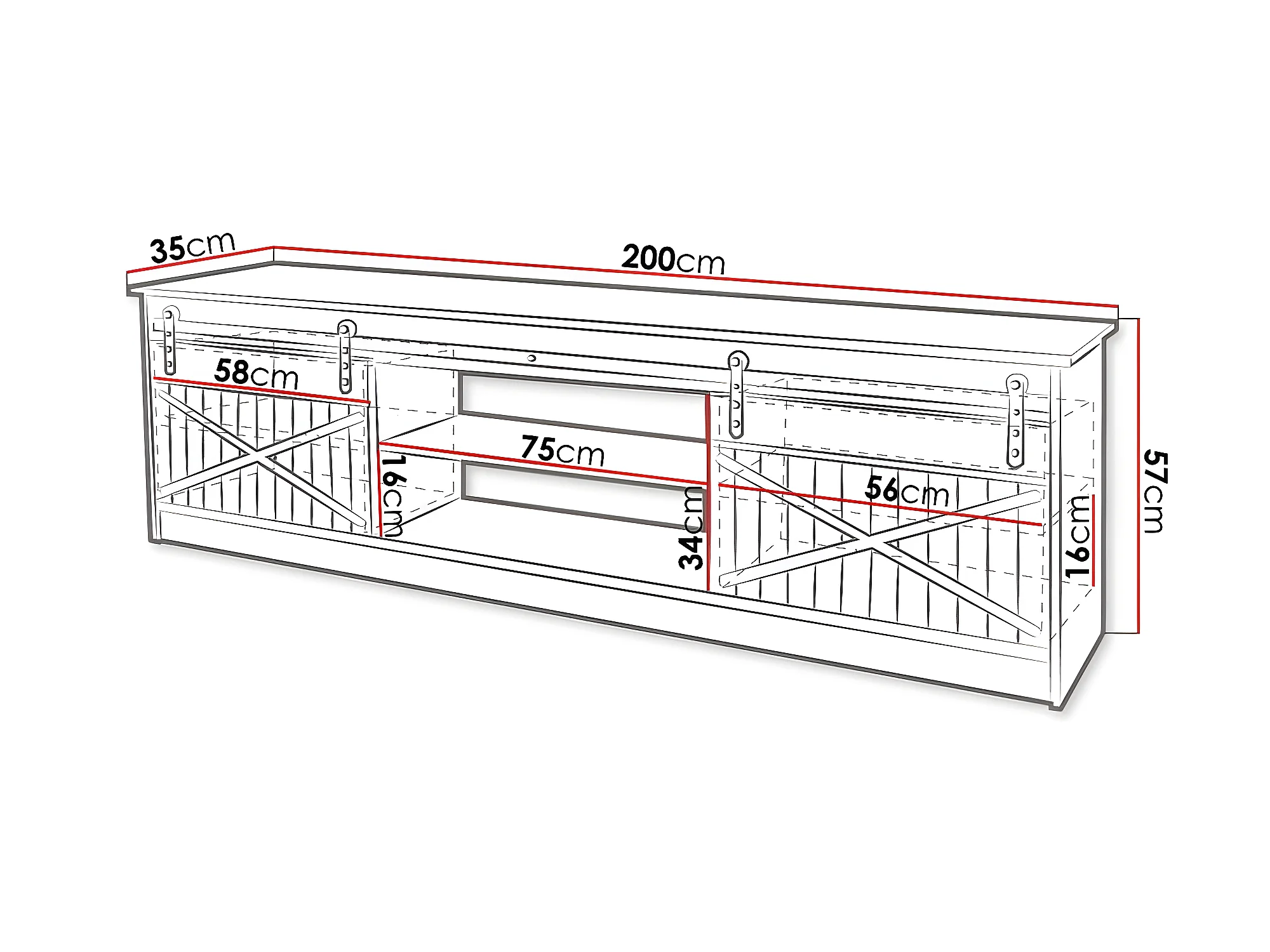 Meuble TV 200x57x35 cm couleur chêne Wotan GRANGE meuble Hi-fi luxueux sideboeard à poser