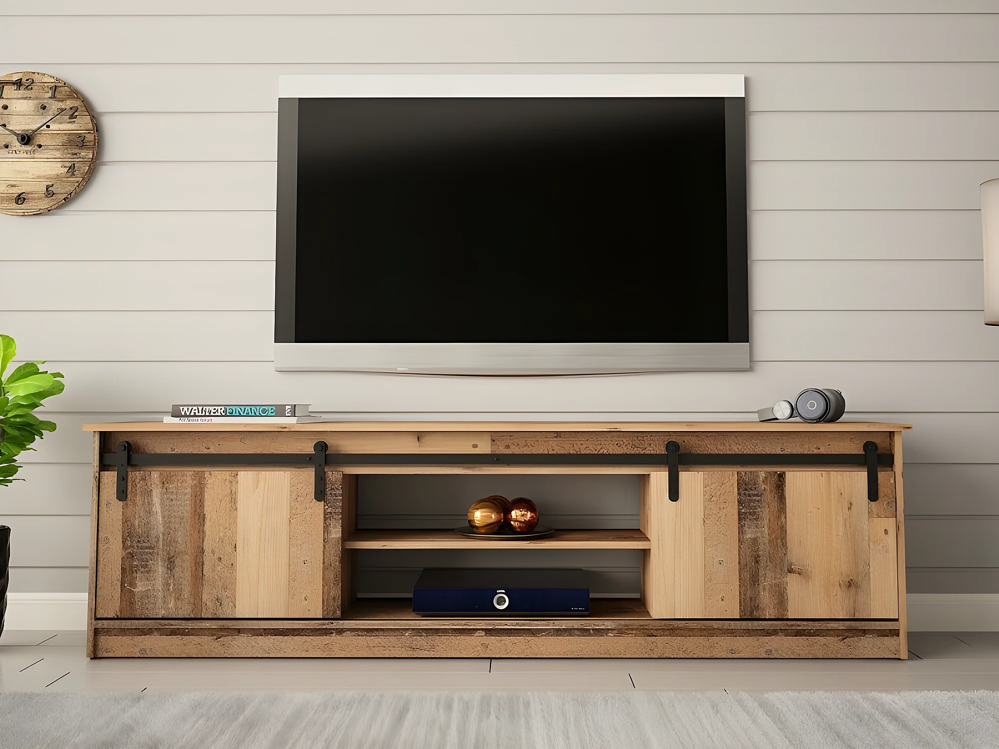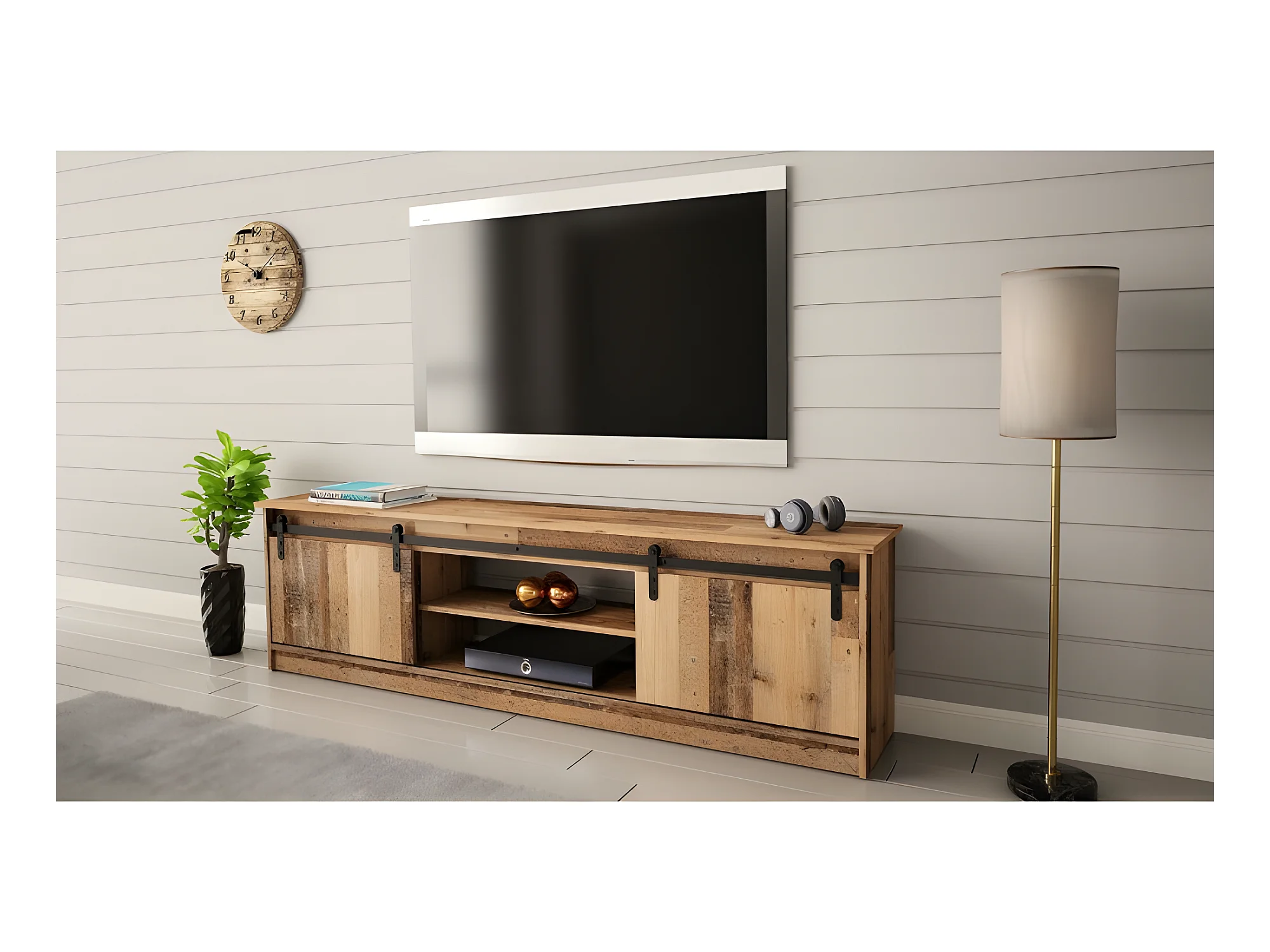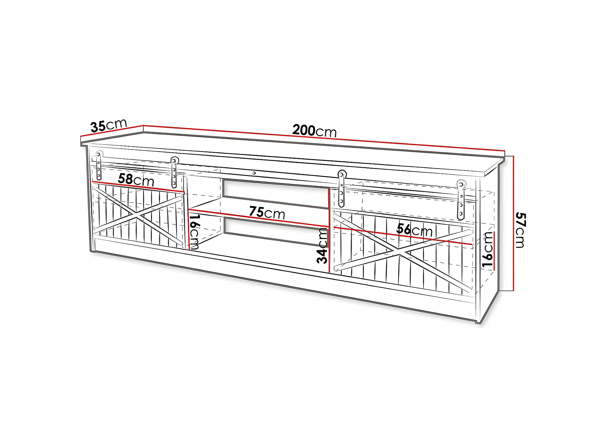 Meuble TV 200x57x35 cm couleur vieux bois GRANGE meuble Hi-fi luxueux sideboeard à poser