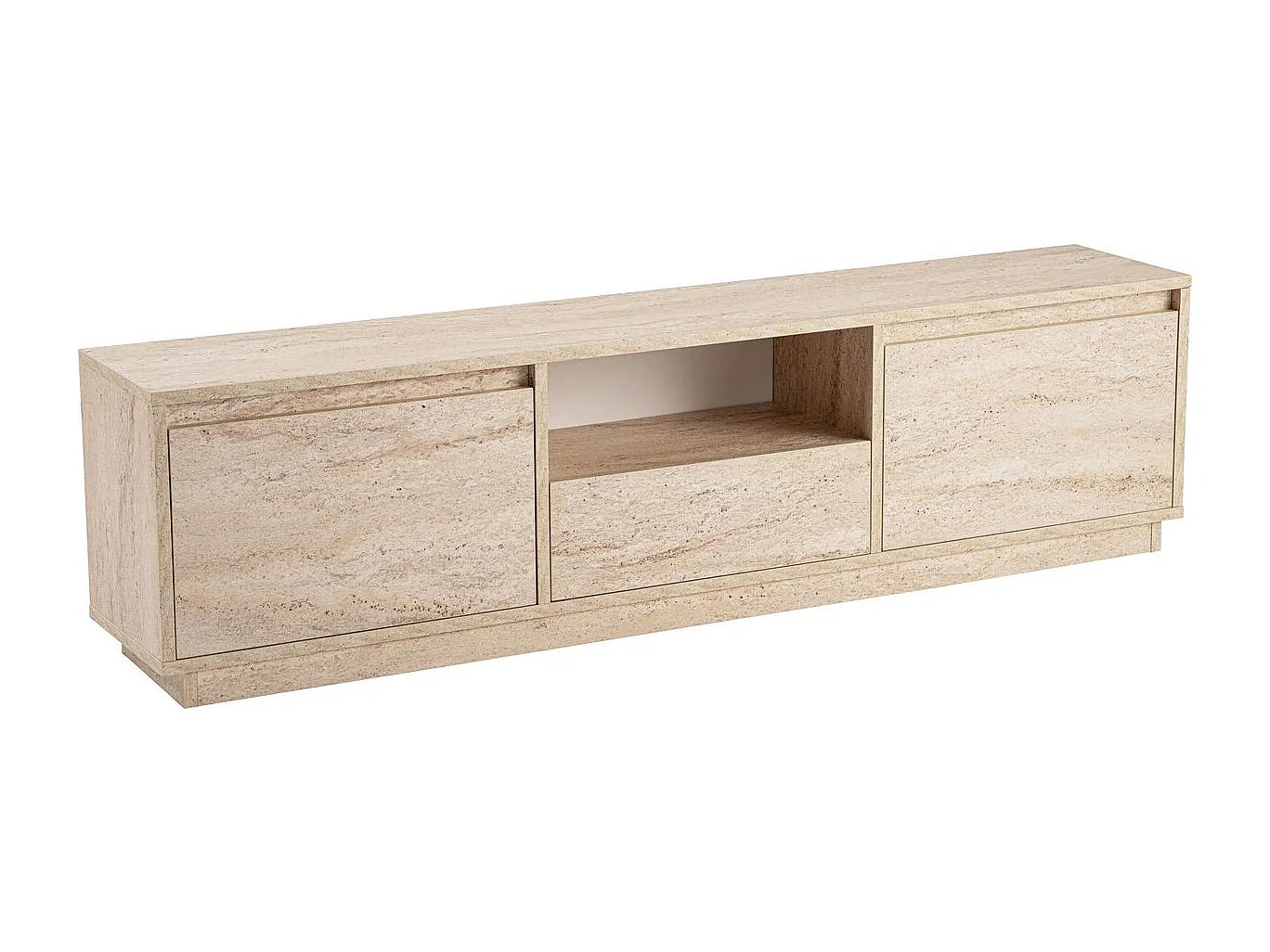 Meuble TV 3 portes 1 niche effet travertin 160 cm - Noane