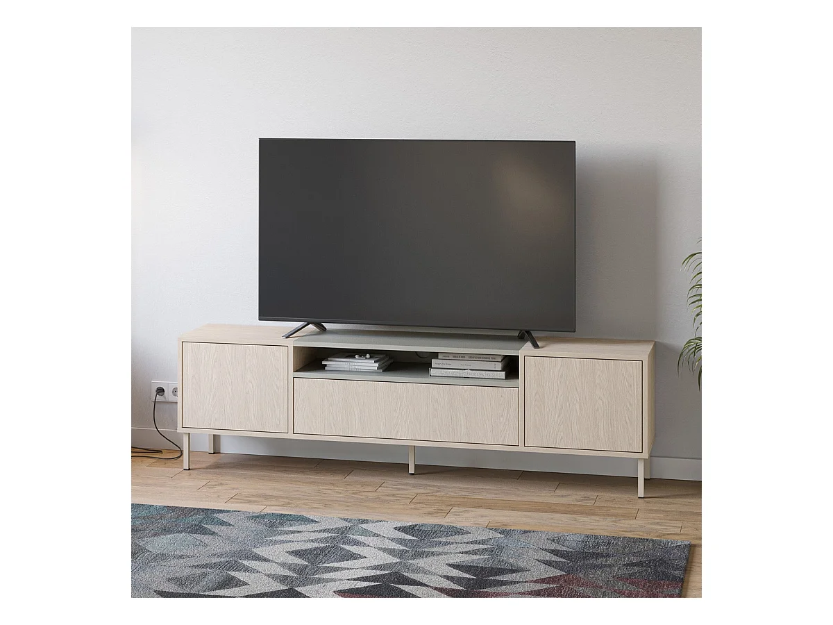 Meuble TV 3 portes chêne clair et vert 180 cm - Amos