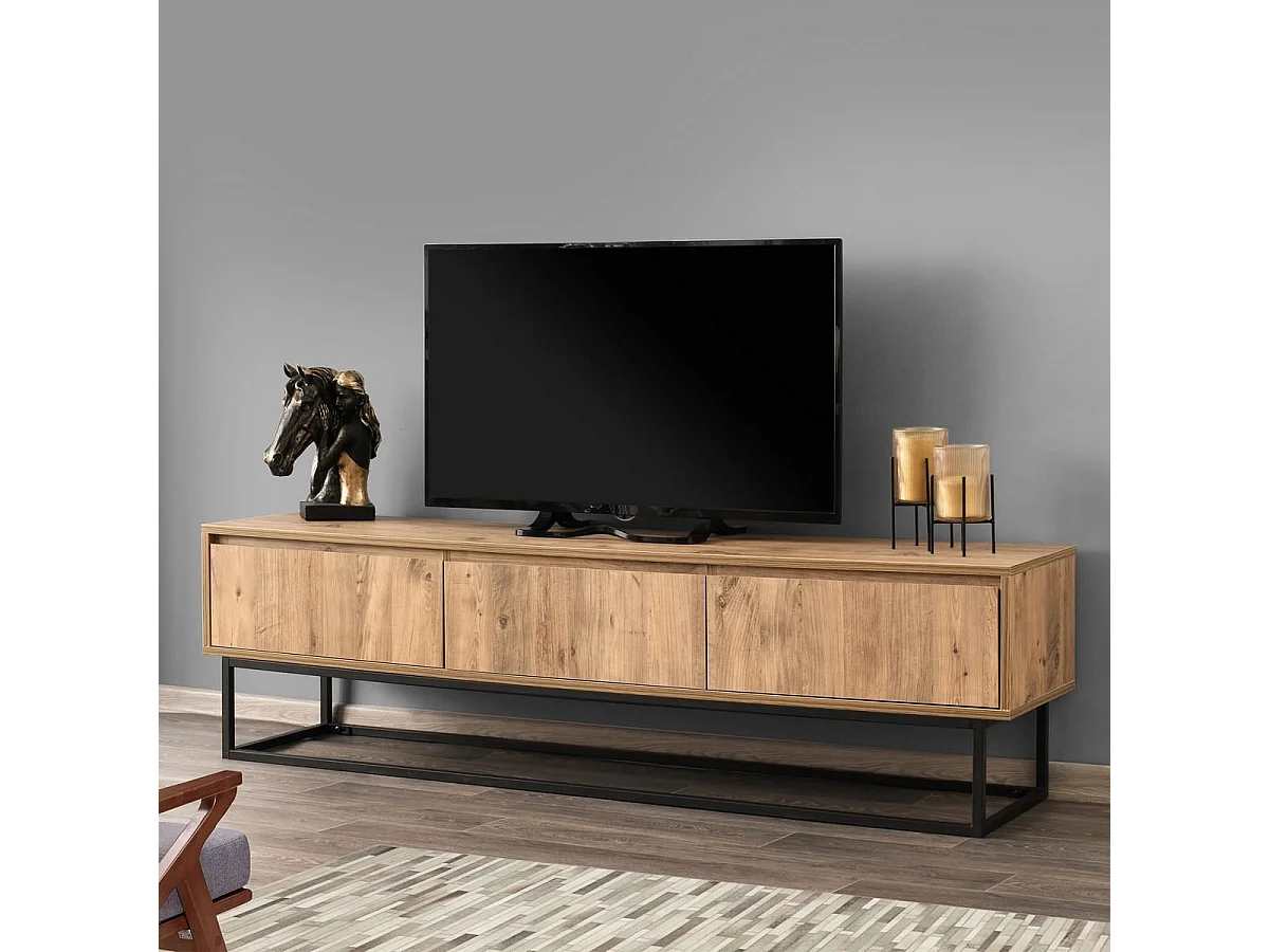 Meuble TV 3 tiroirs effet bois 180 cm - Breno