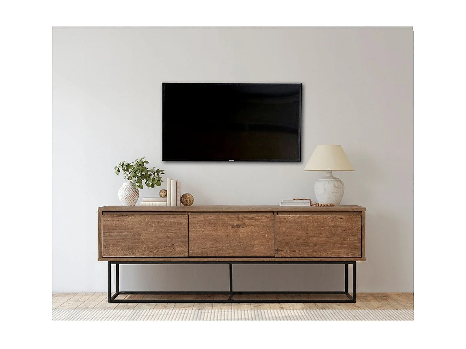 Meuble TV 3 tiroirs effet noyer 140 cm - Nerio