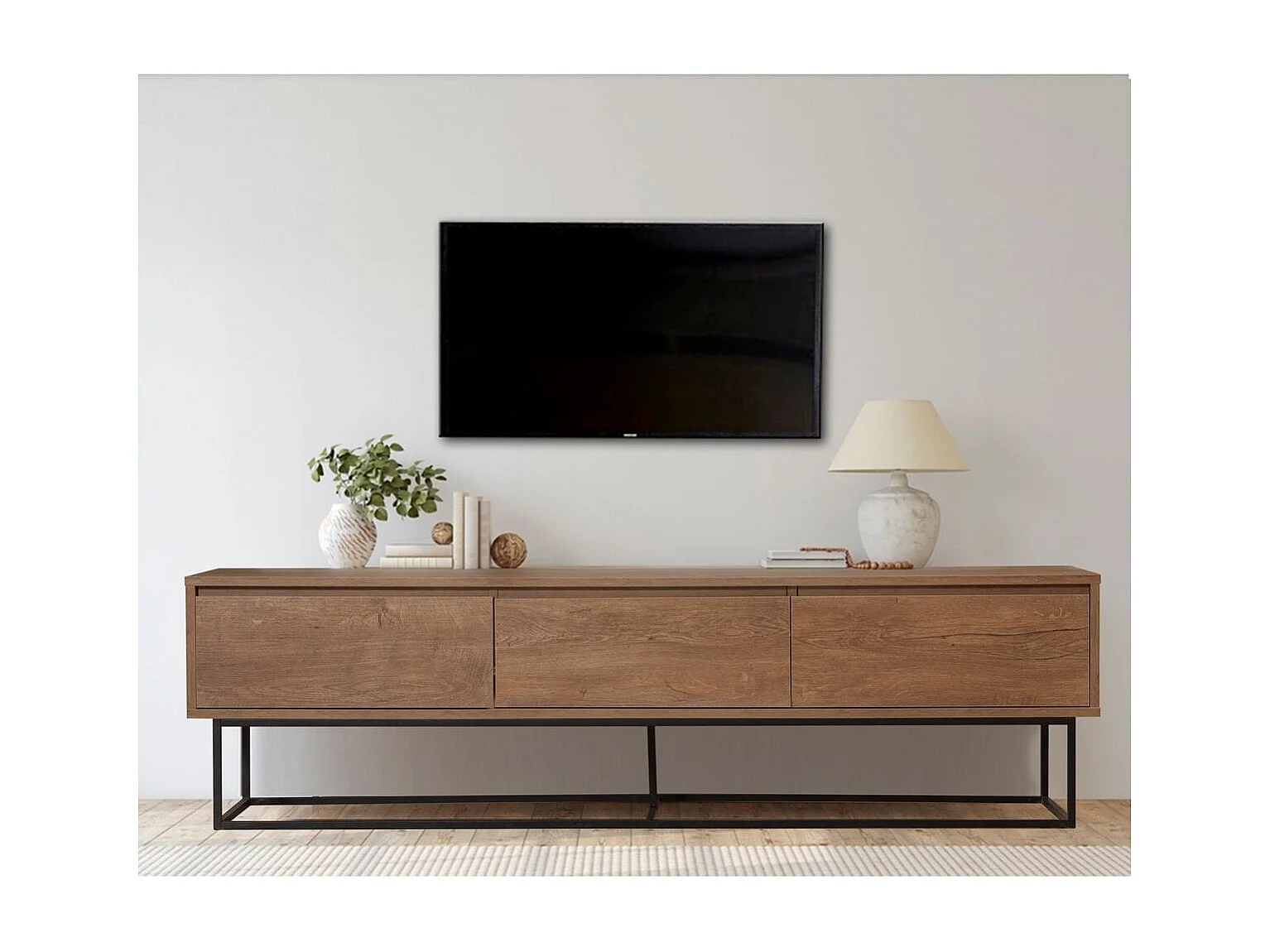 Meuble TV 3 tiroirs effet noyer 180 cm - Nerio