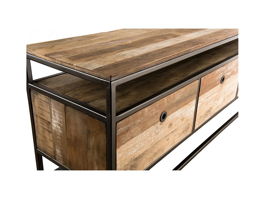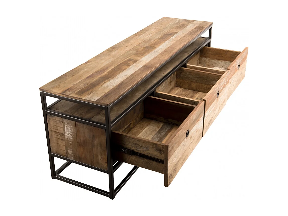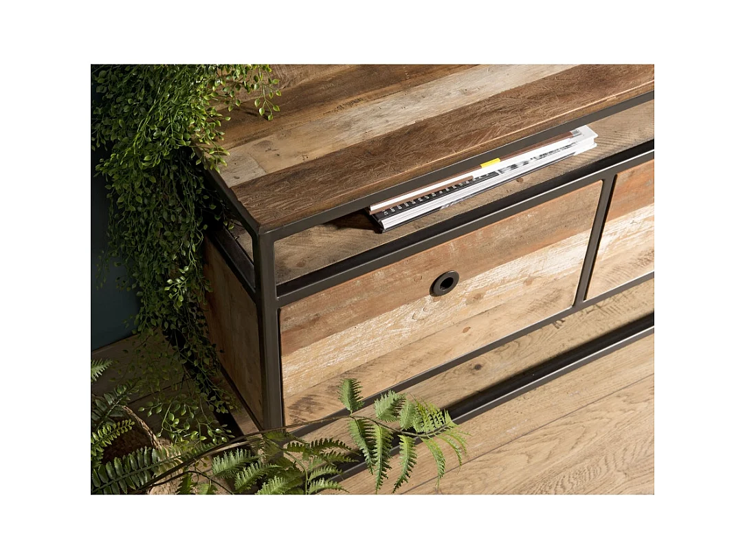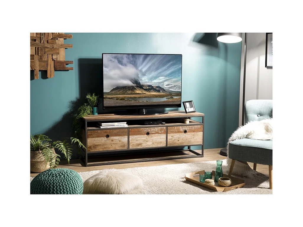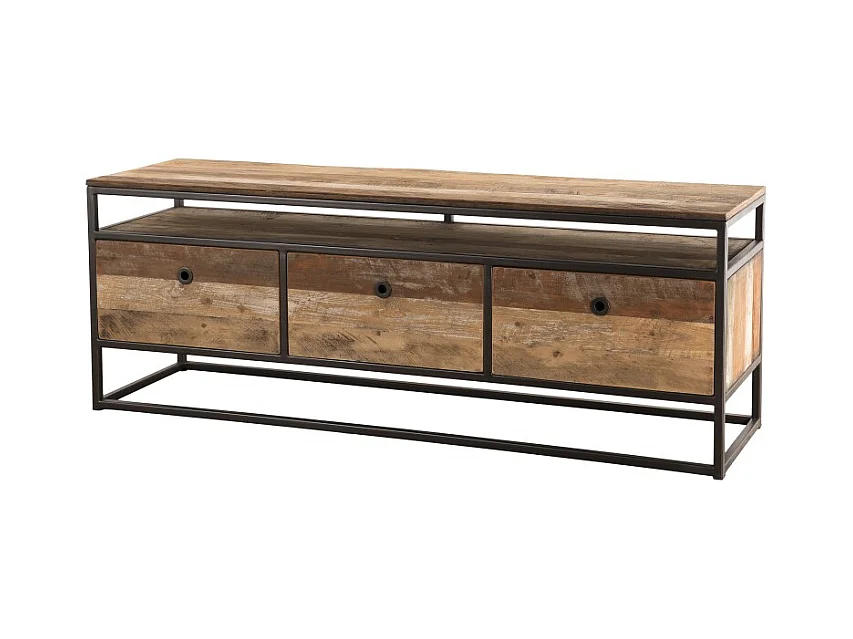 SIXTINE - Meuble TV marron 3 tiroirs en bois de Teck recyclé