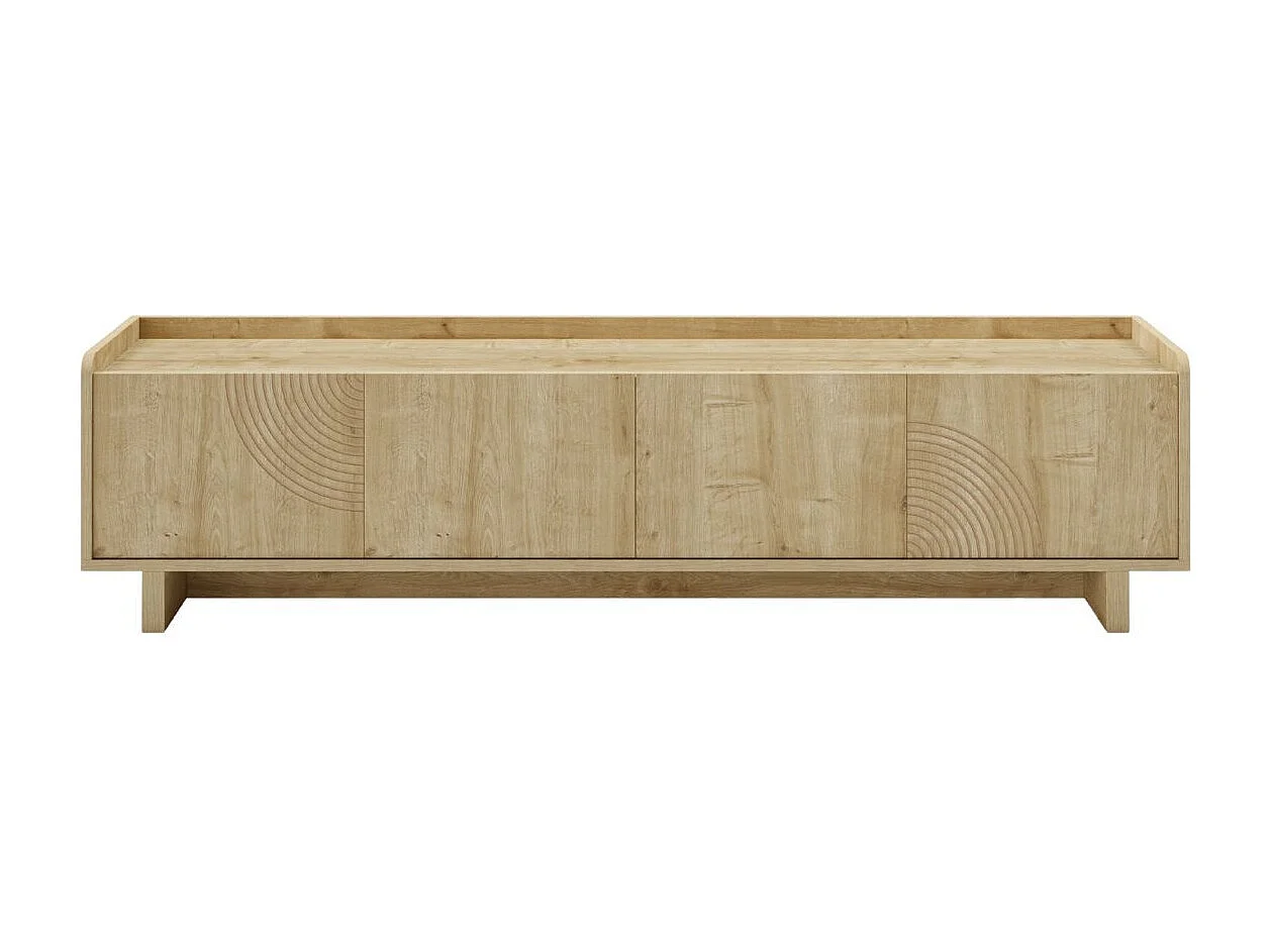 Meuble TV 4 portes 180cm en mélaminé imitation bois décor relief fraisé - RIAD