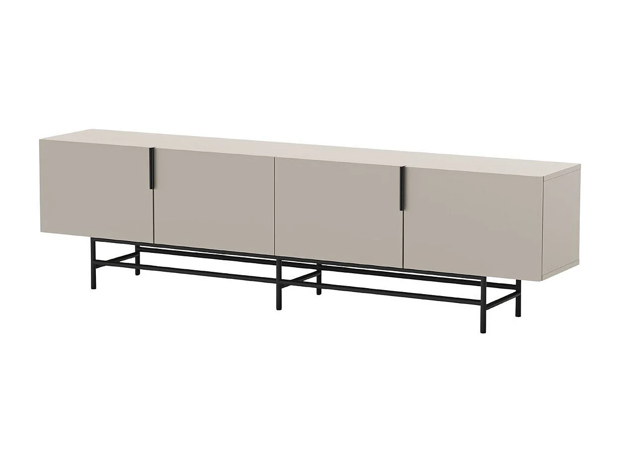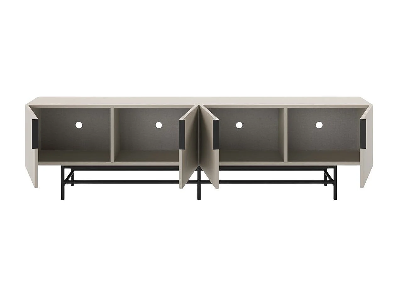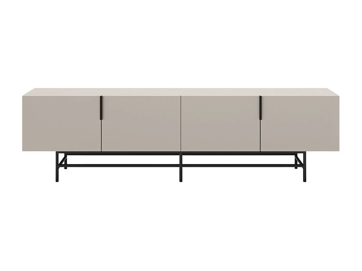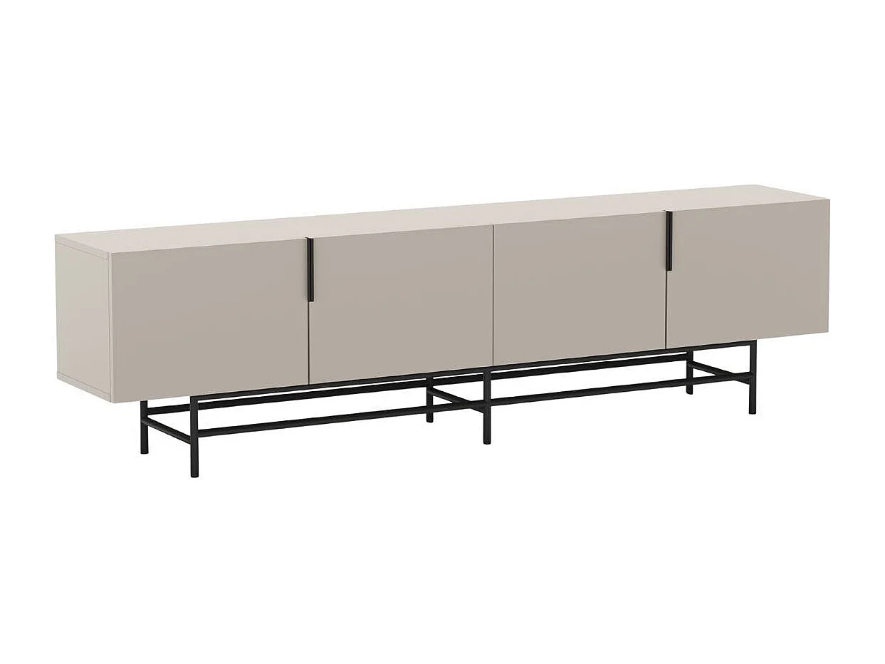 Meuble TV 4 portes en mélaminé beige et piètement en métal laqué noir - ALDINE