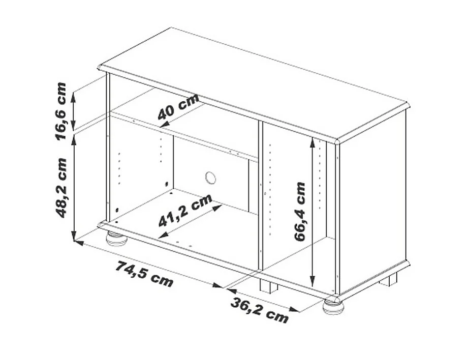 Meuble TV 55 Pouces Chêne 3 Portes 1 Abattant 6 Niches L120.6 H 77 P 46.5 cm