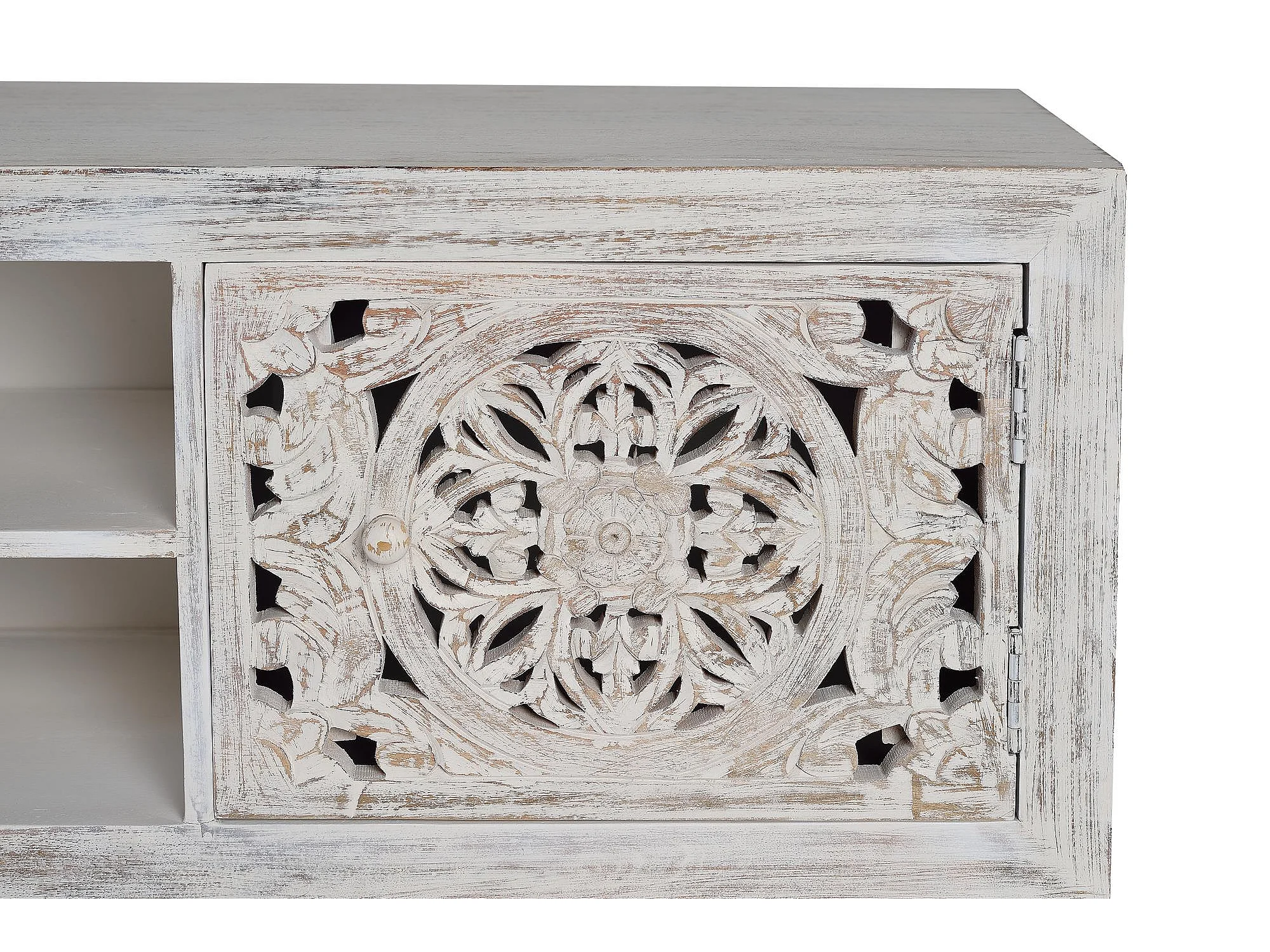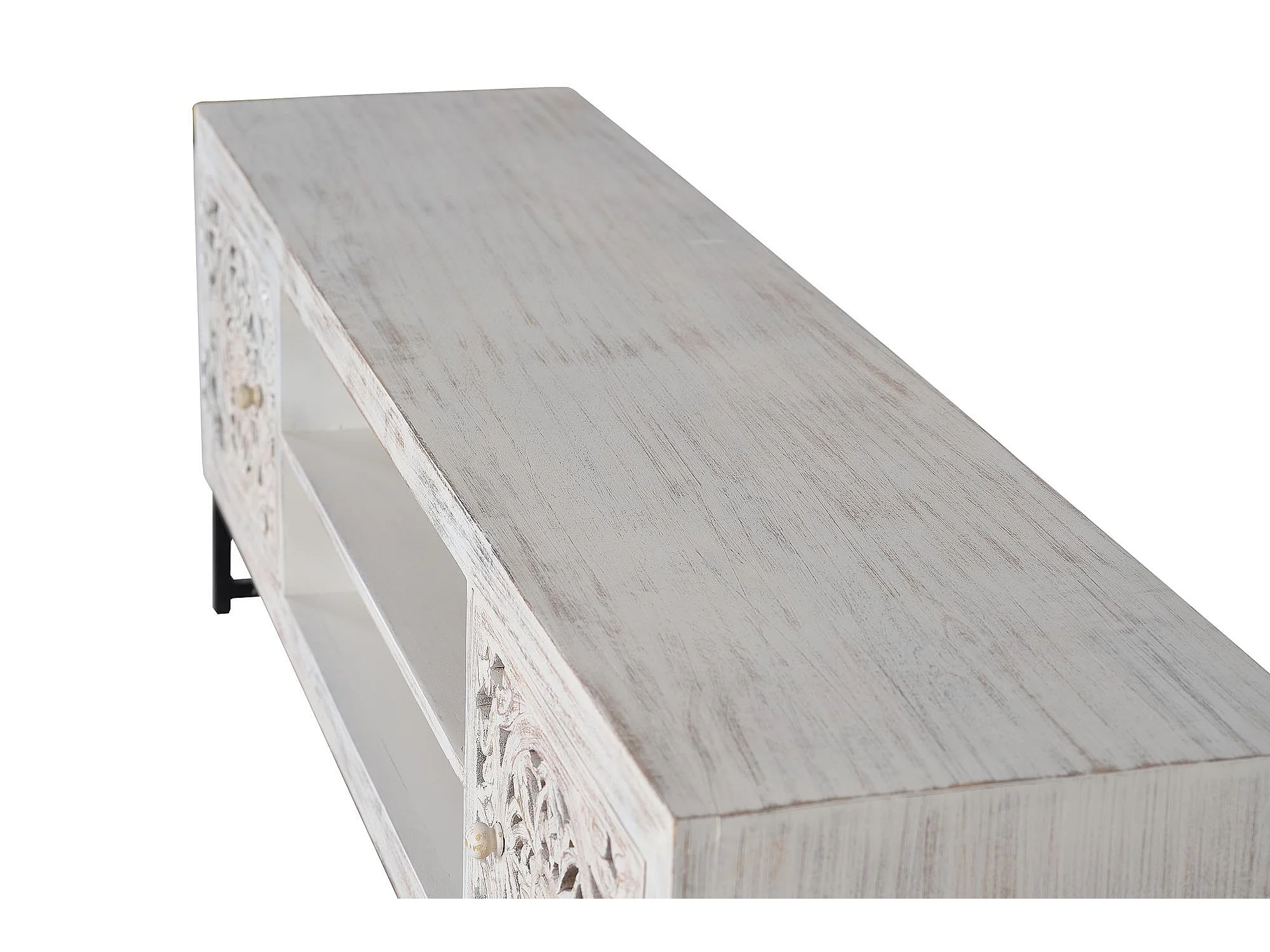 Meuble tv en bois de manguier sculptée et métal