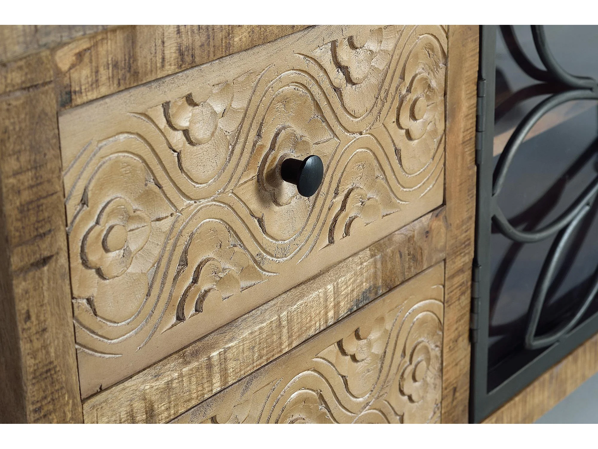 Meuble TV en bois manguier marron vieilli et métal