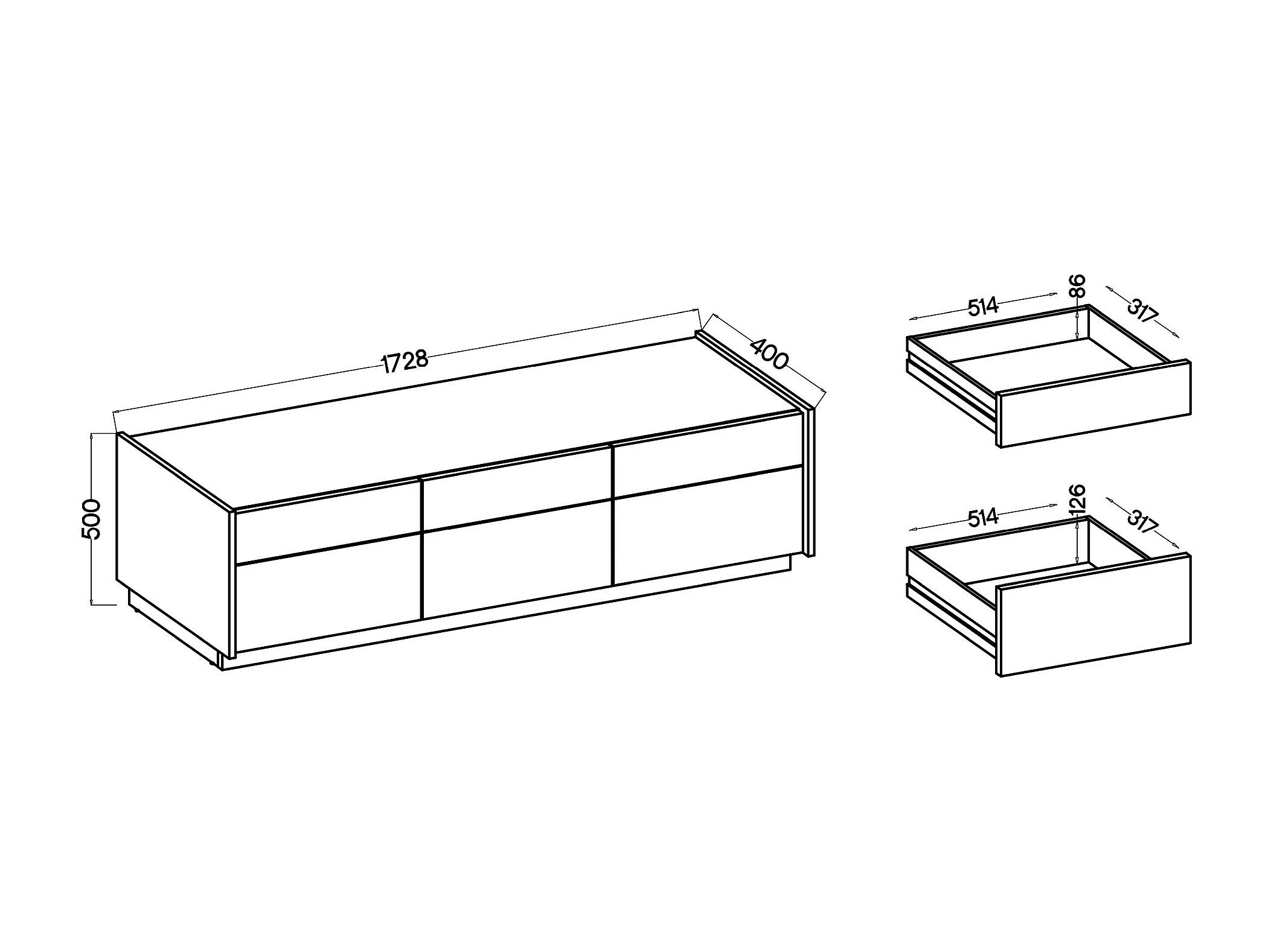 Meuble TV 6 tiroirs - 173 cm - beige / noyer okapi - KOBBE