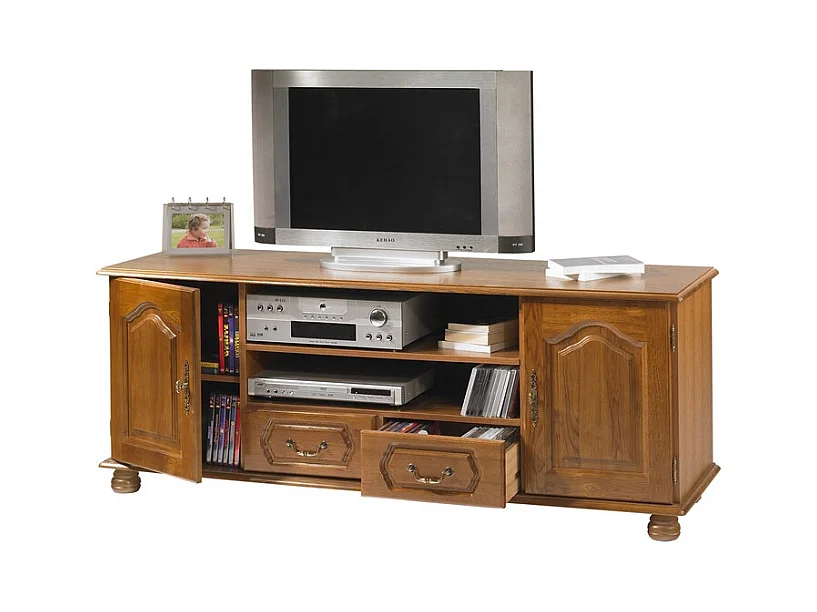 Meuble TV 70 Pouces Chêne Rustique 2 Portes 2 Tiroirs L 158.8 H 60.3 P 46 cm