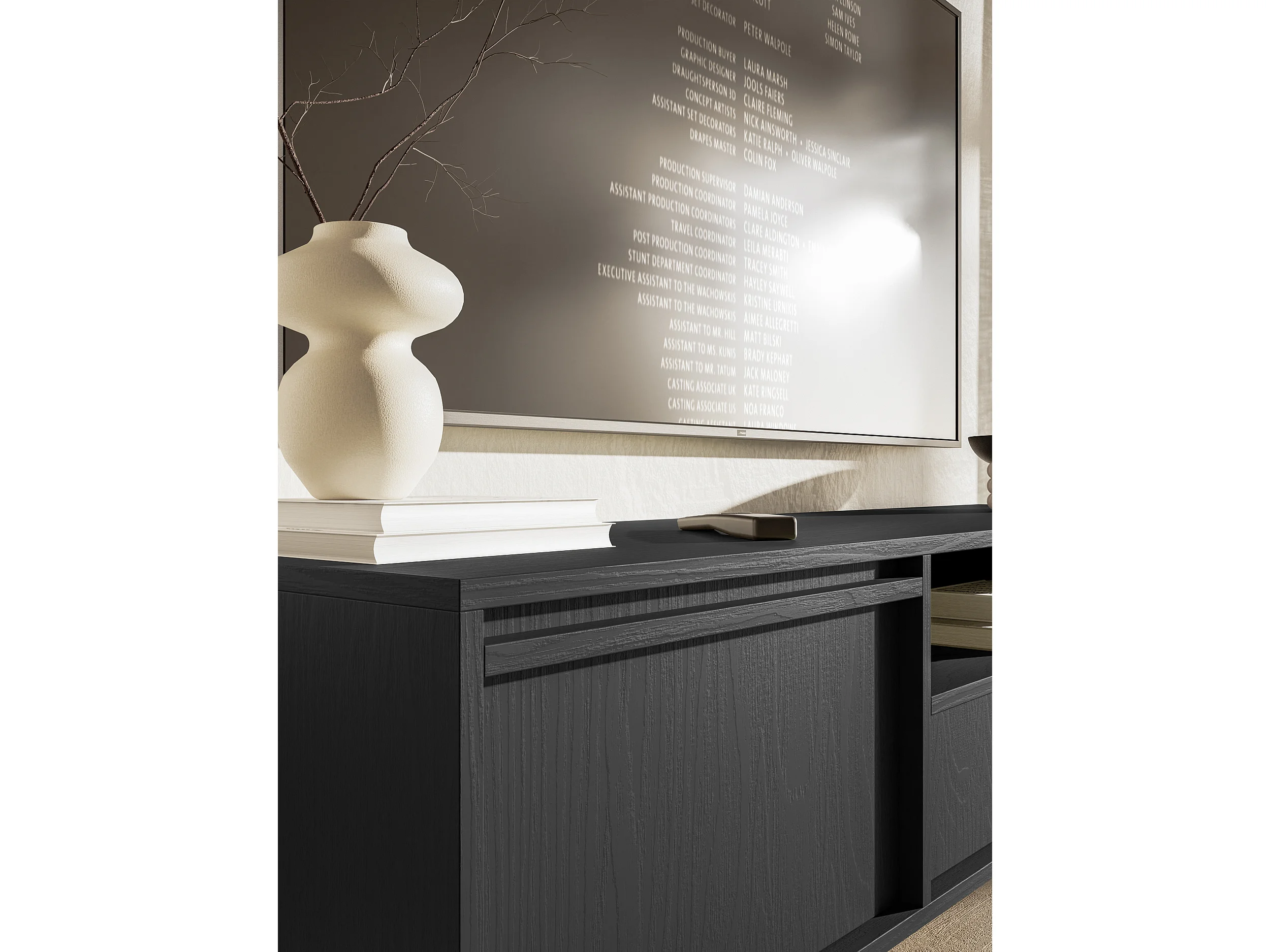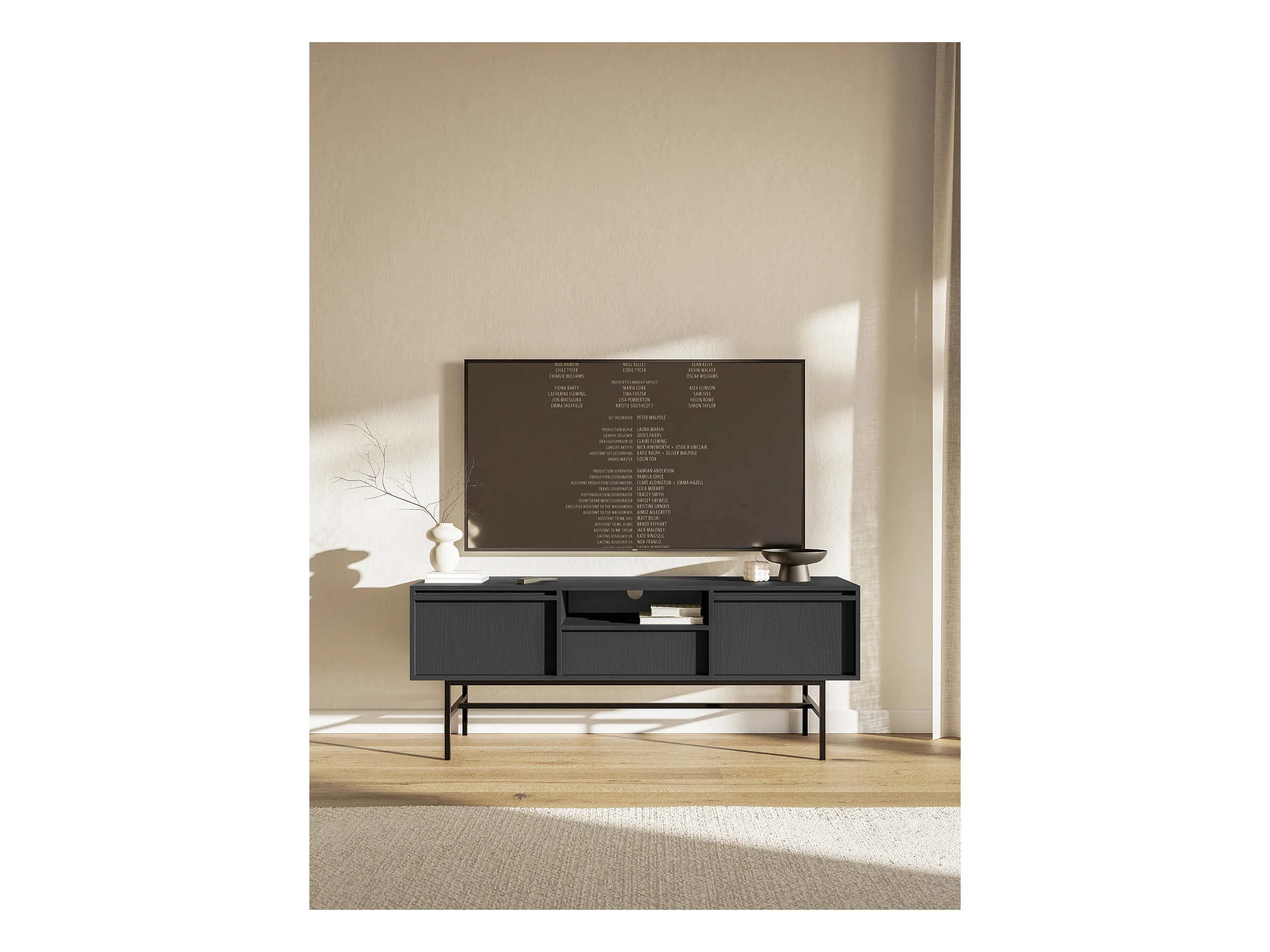 Meuble TV à deux portes - 154 cm - avec tiroir et cadre - noir - EVO