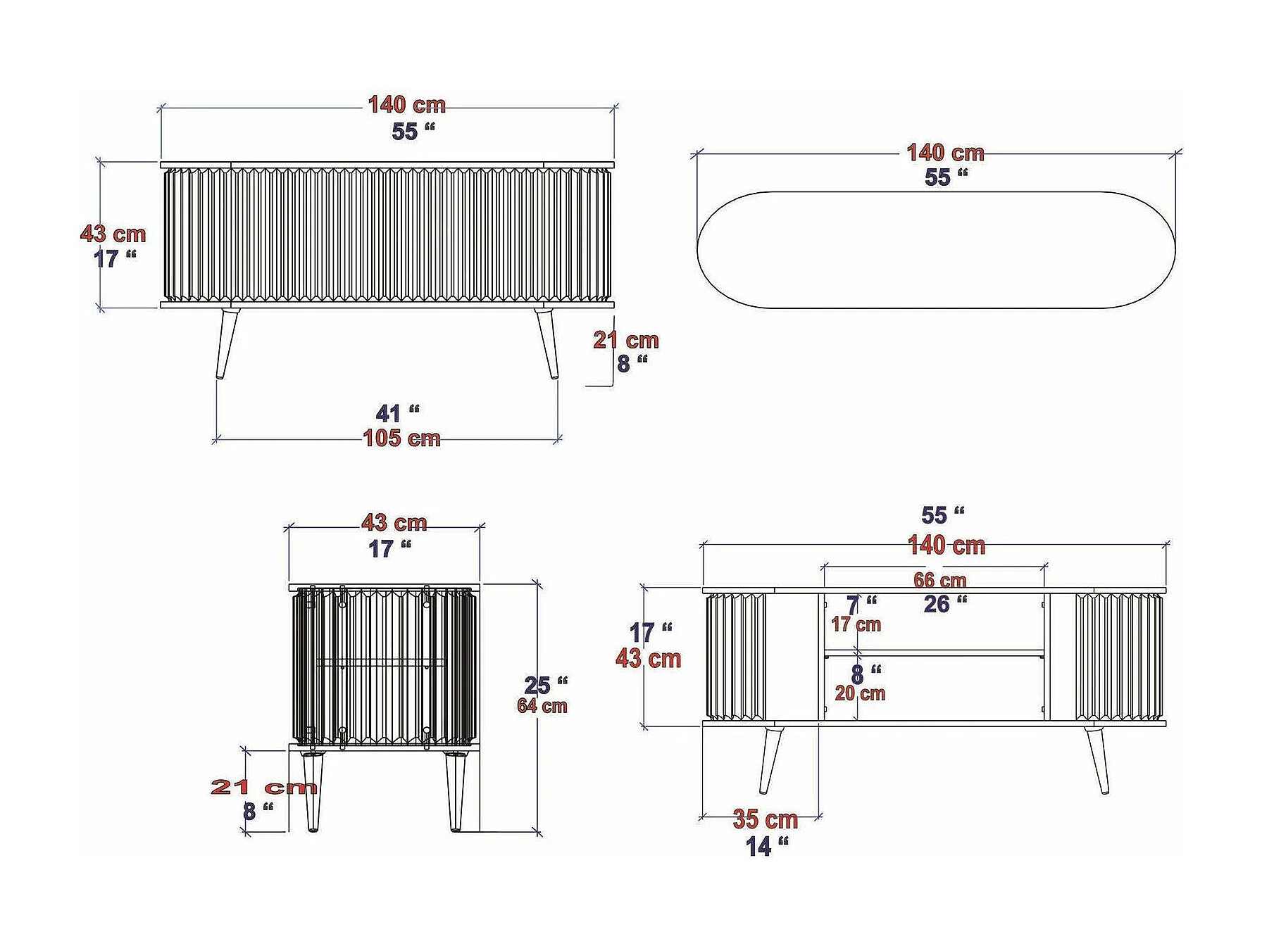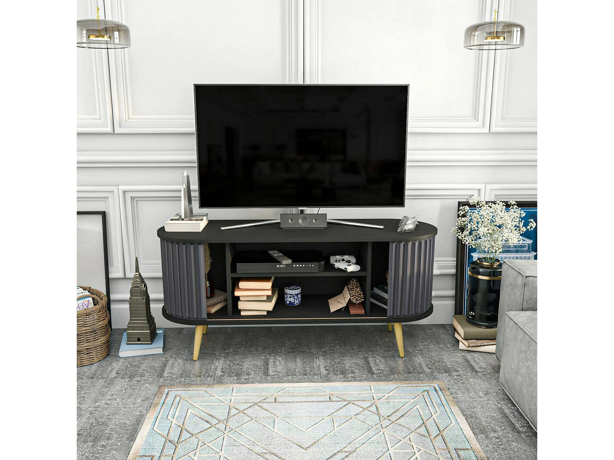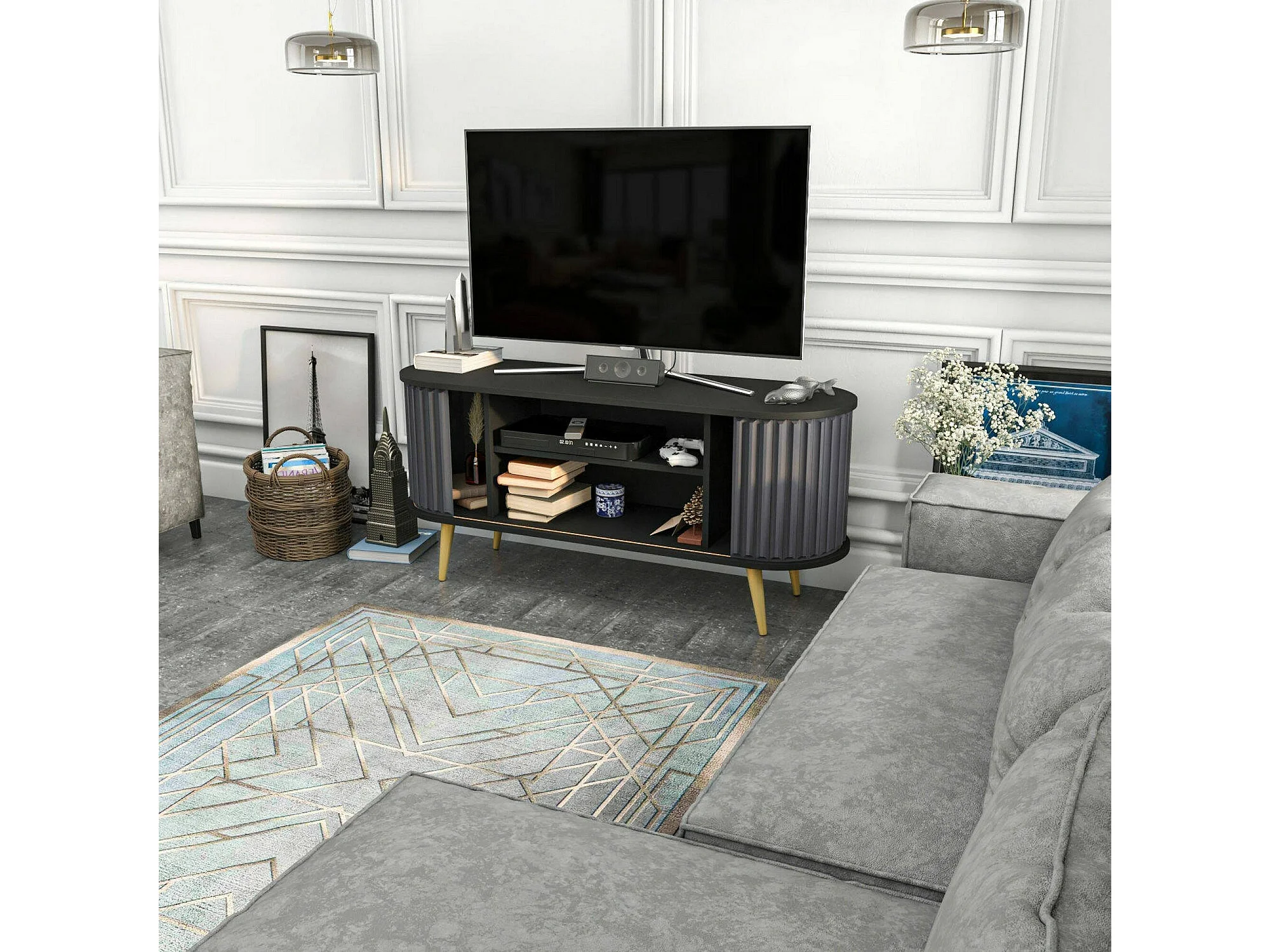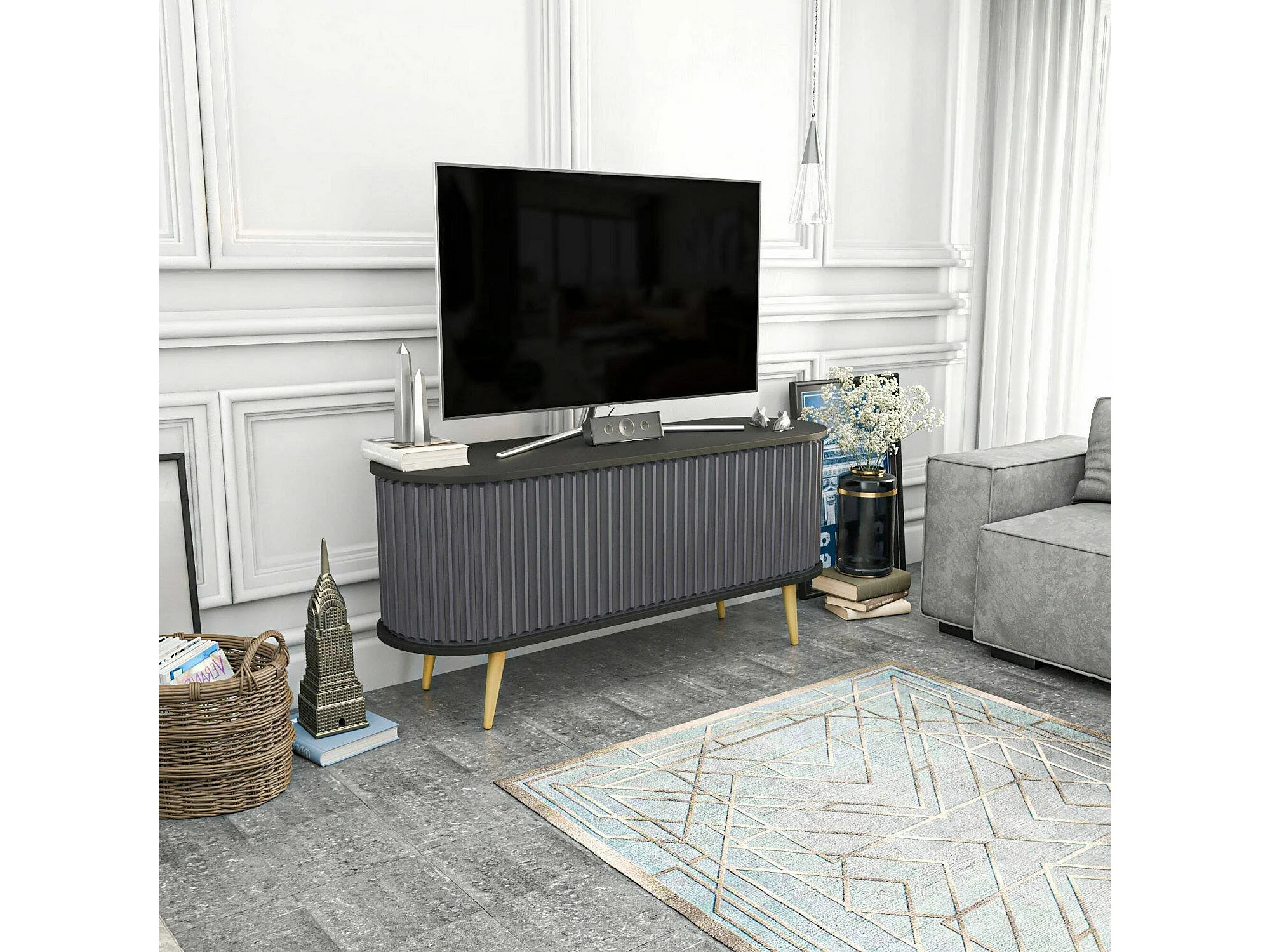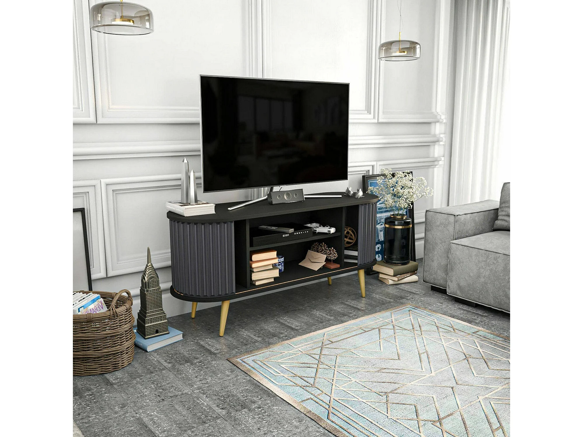 Meuble TV Aludra, Buffet de salon, Armoire basse pour TV, Base murale de rangement, 140x43h64 cm, Noir et Anthracite