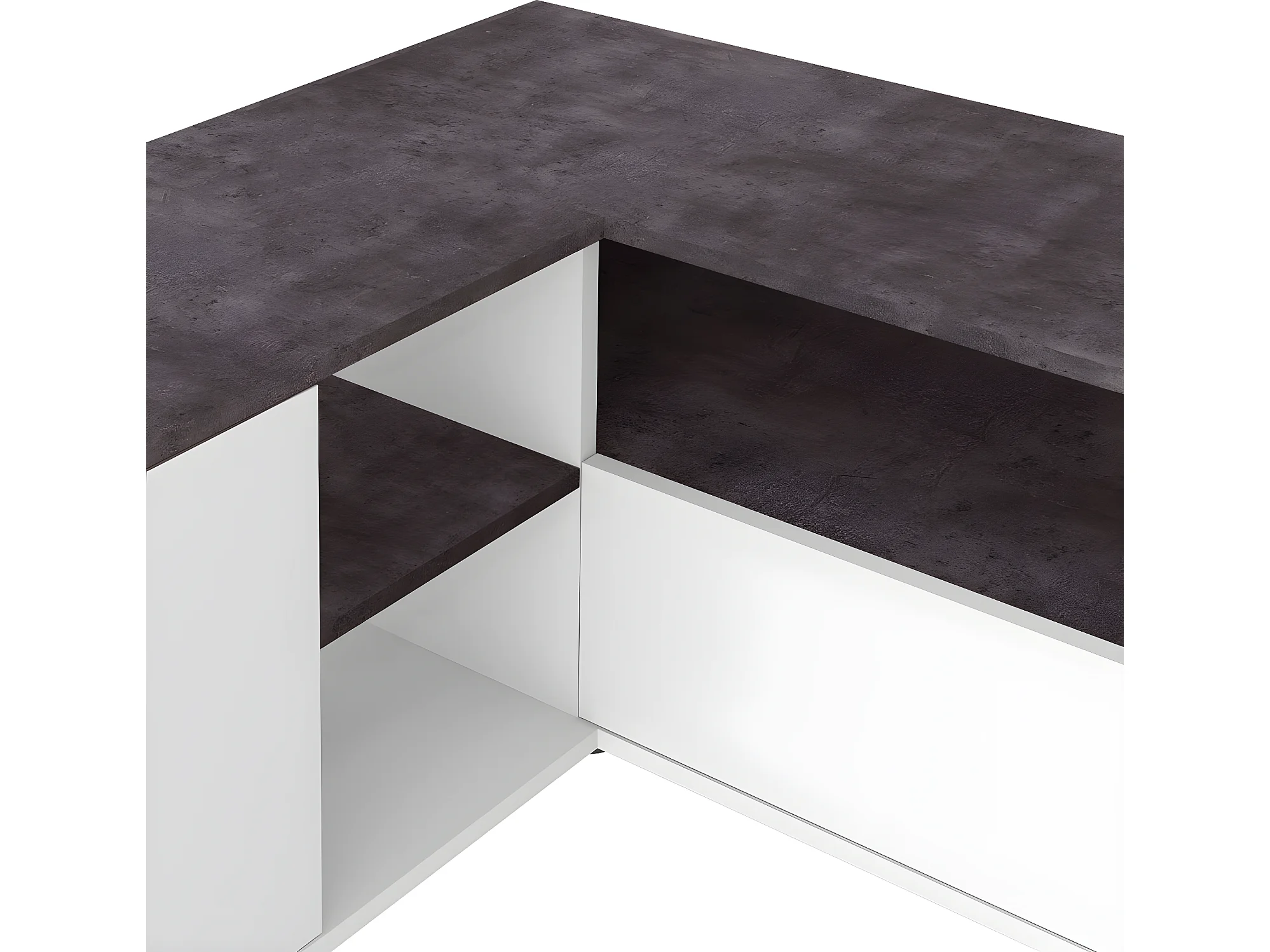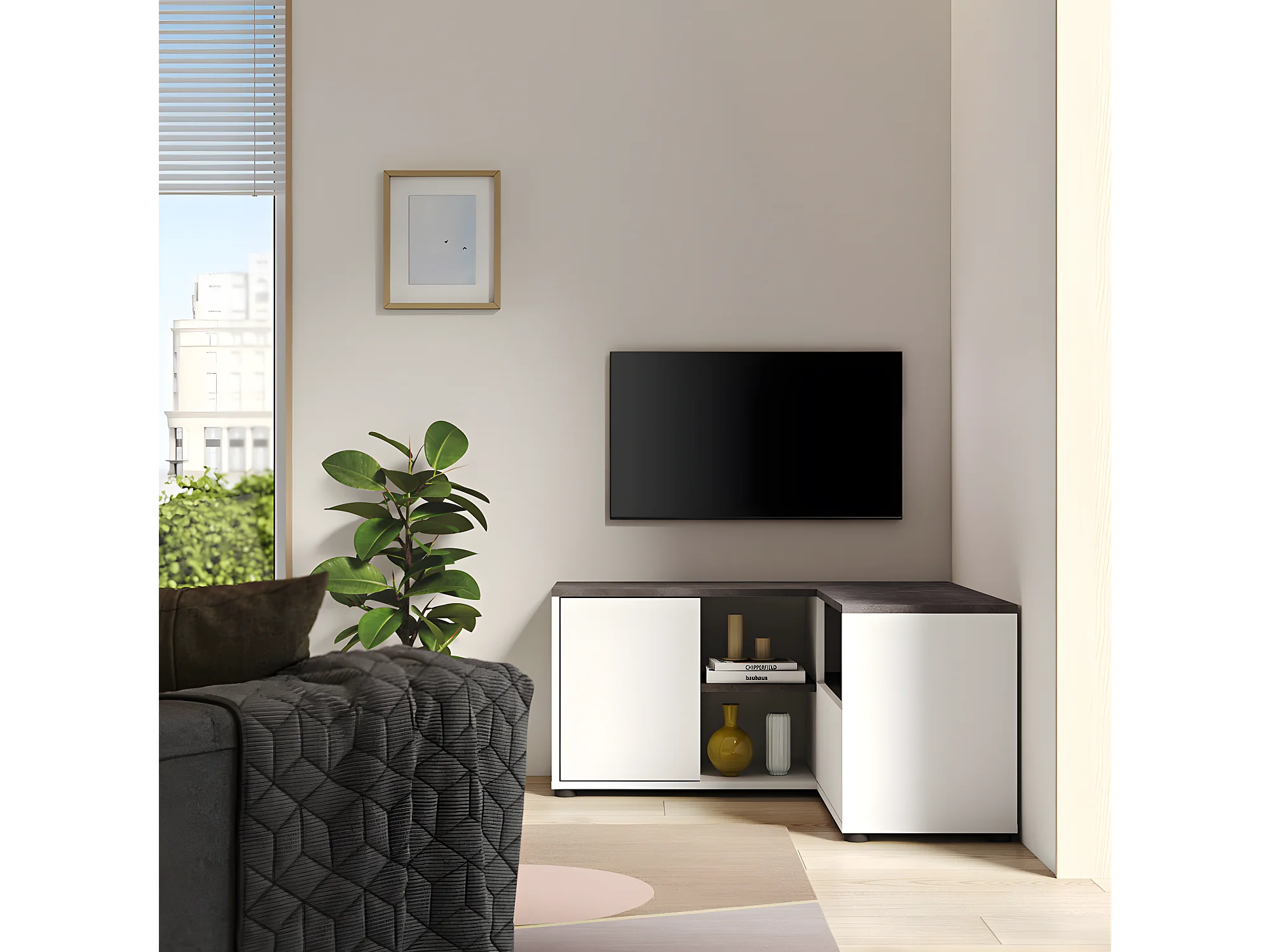 Meuble TV ANGLE 90 - blanc et béton - TEMAHOME