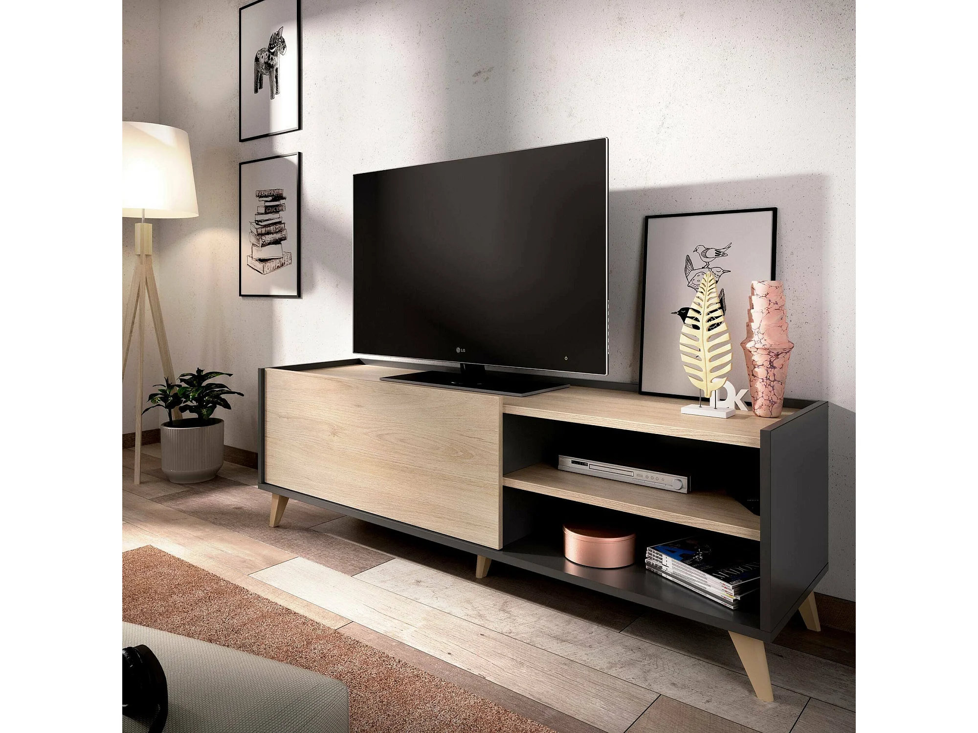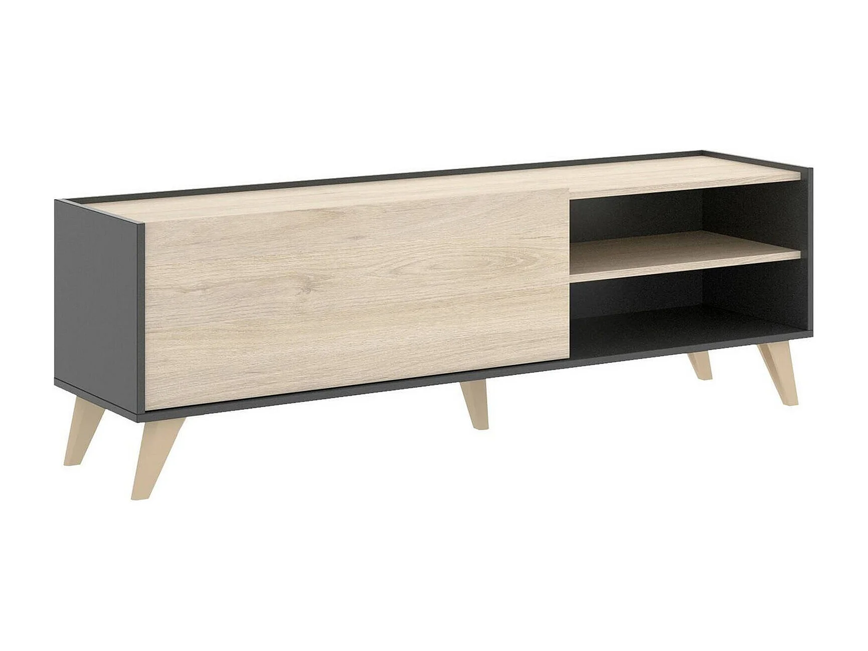 Meuble TV Asinara, Buffet bas de salon, Buffet de salon pour télévision, 155x43h47 cm, Chêne et Anthracite