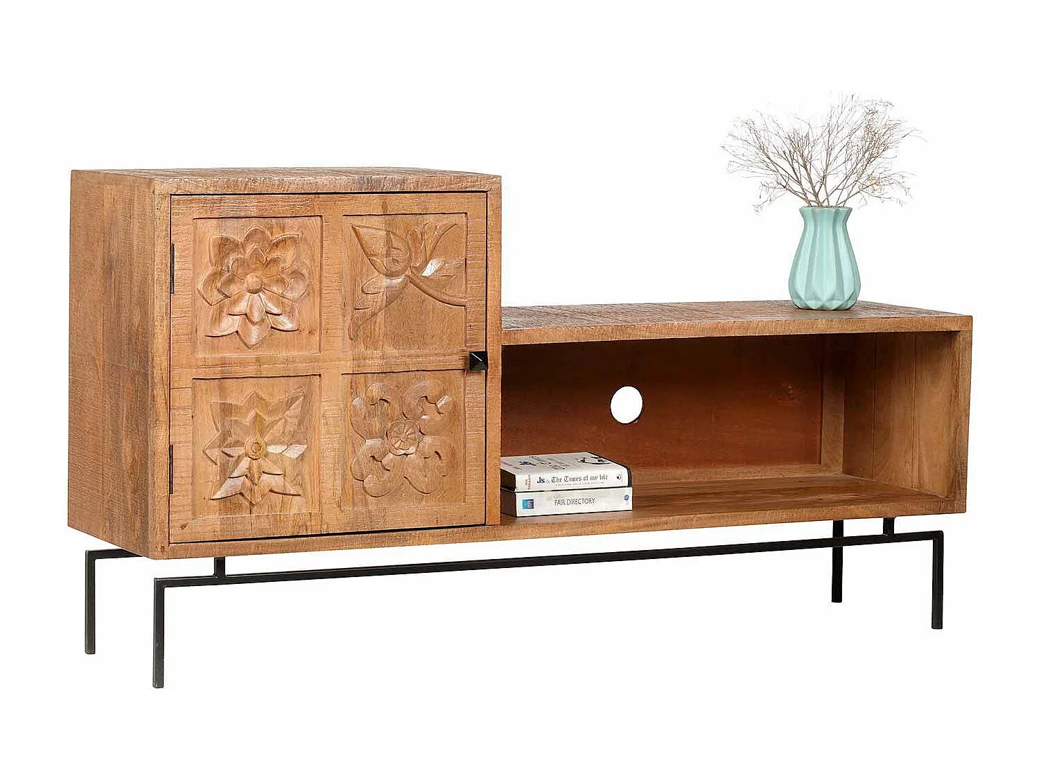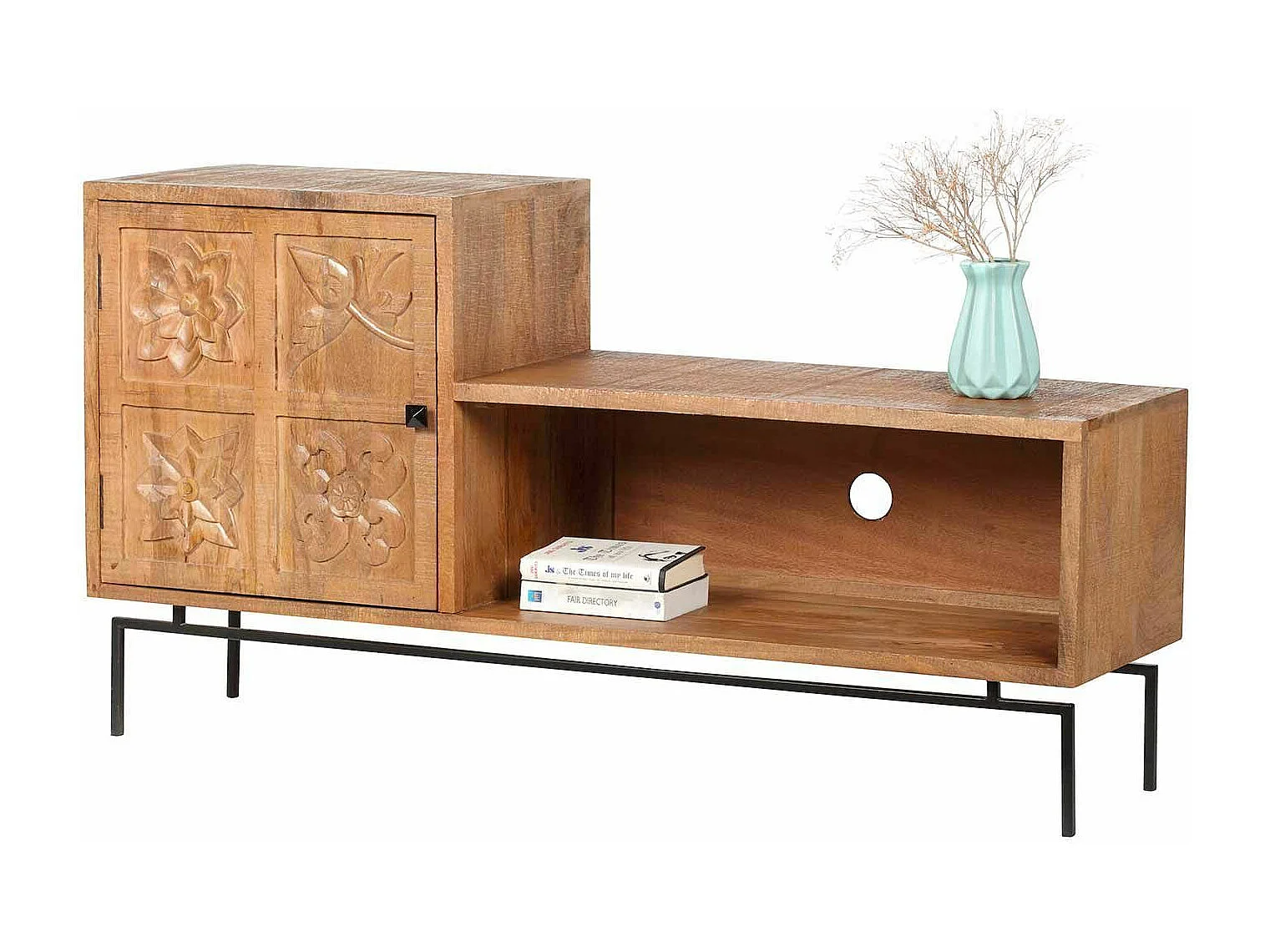 Meuble TV asymétrique 1 porte | Manguier Sculture