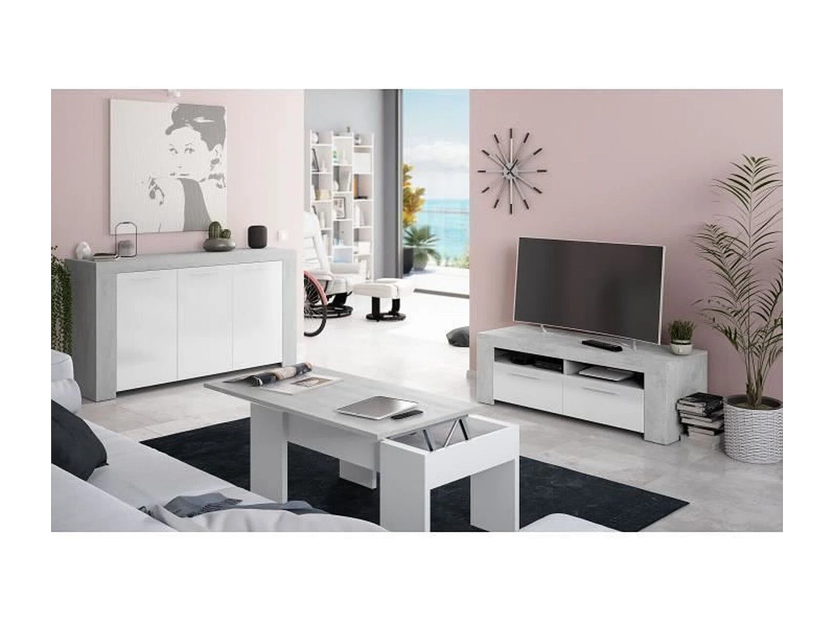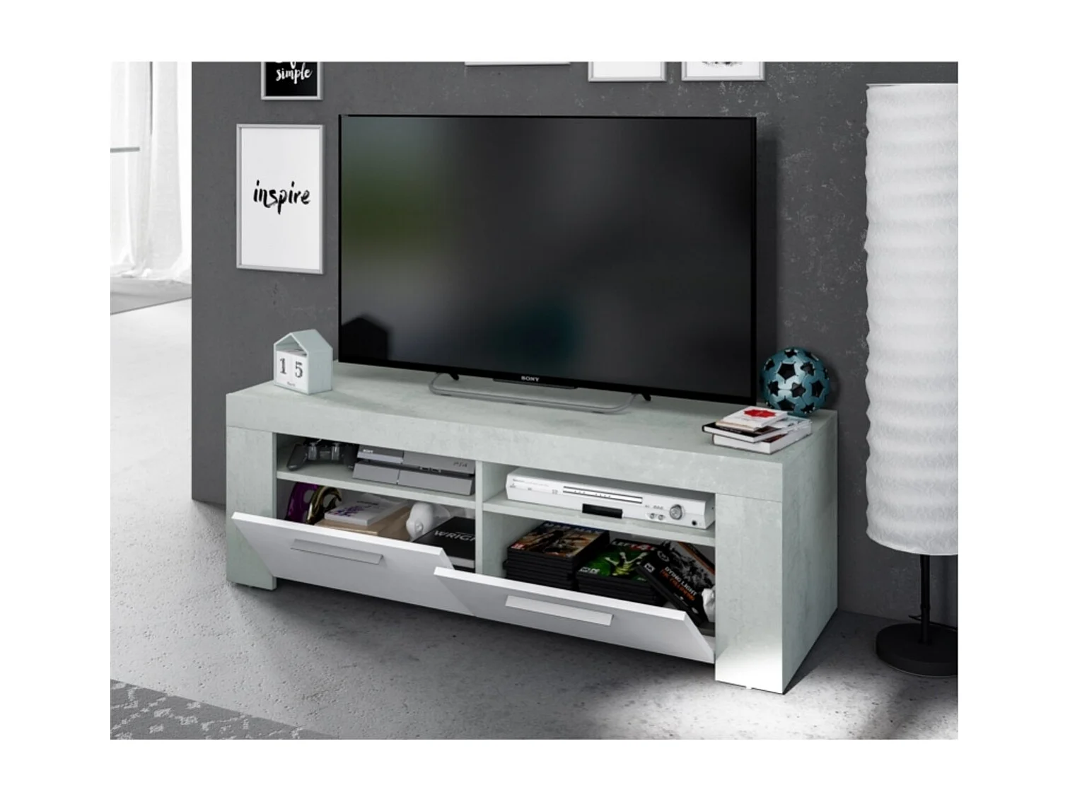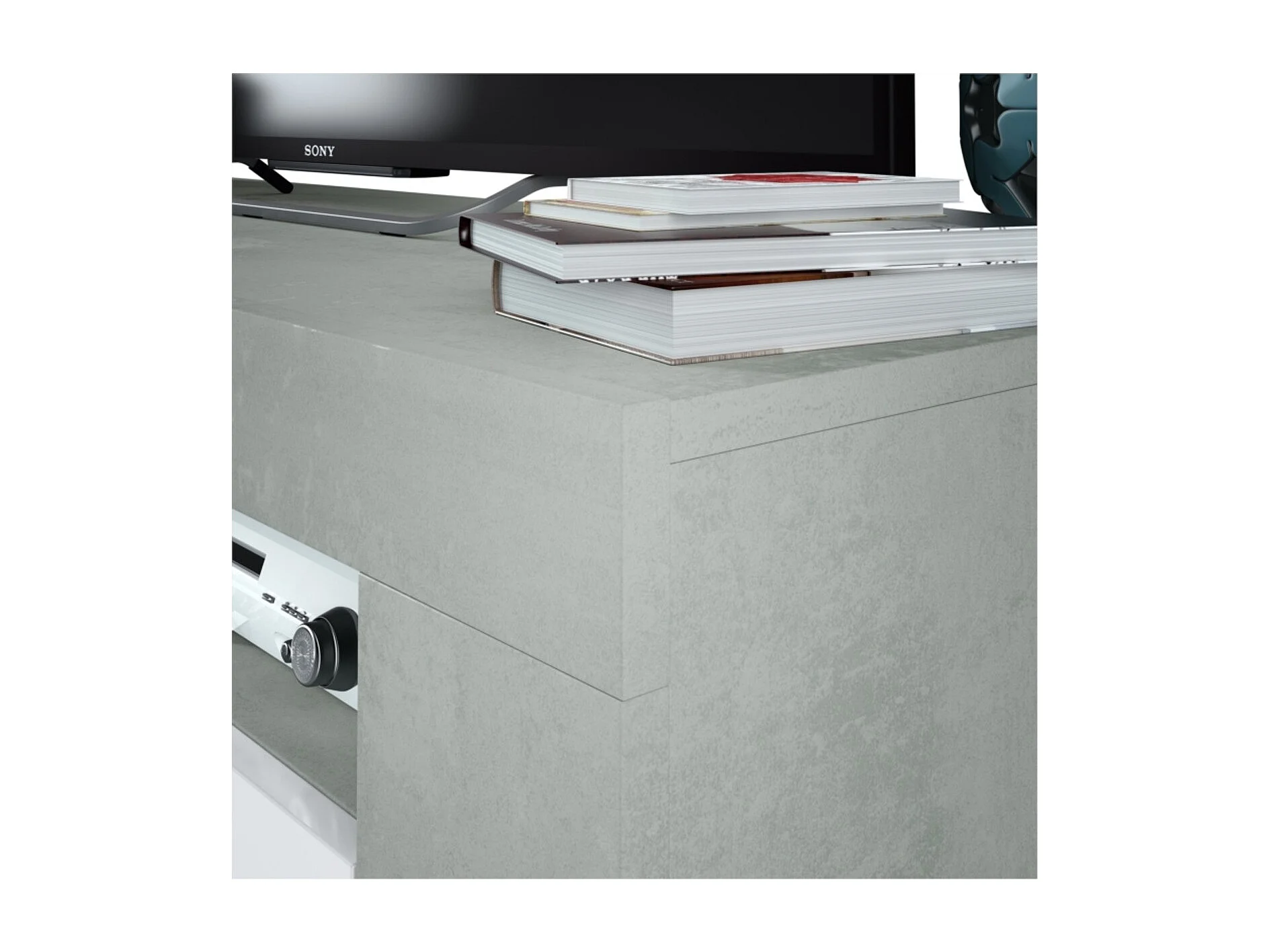 Meuble TV - Contemporain - Panneau de particules - Blanc/Béton Gris Clair - L 120 x P 42,1 x H 31,8 cm - PILVI