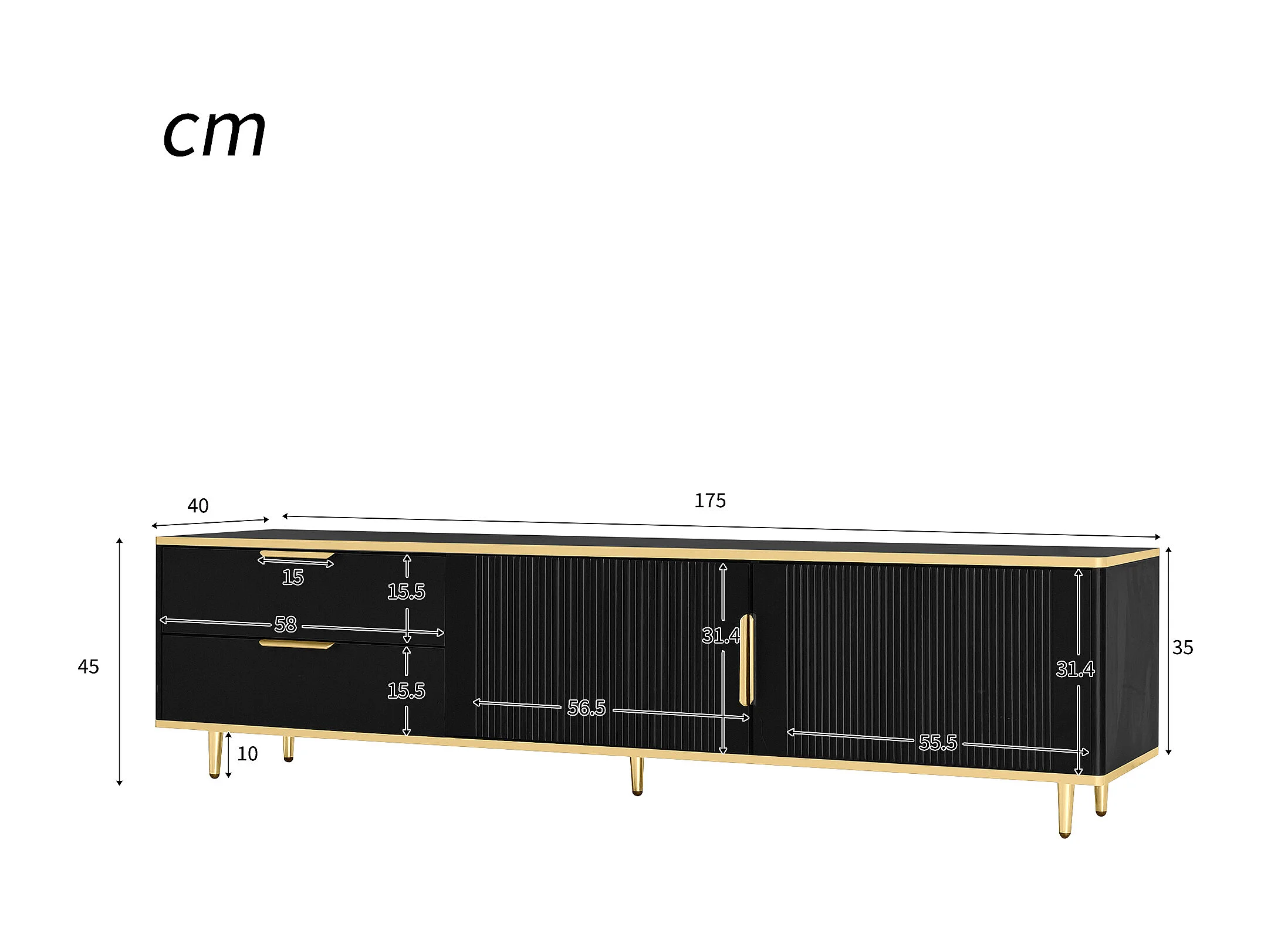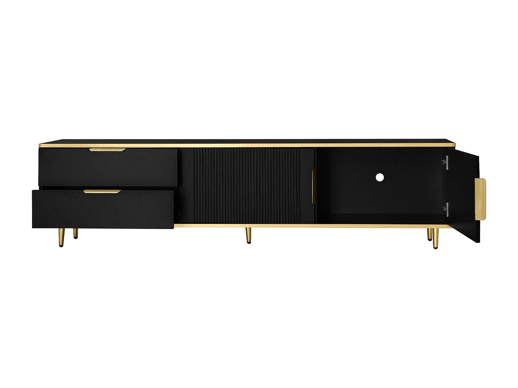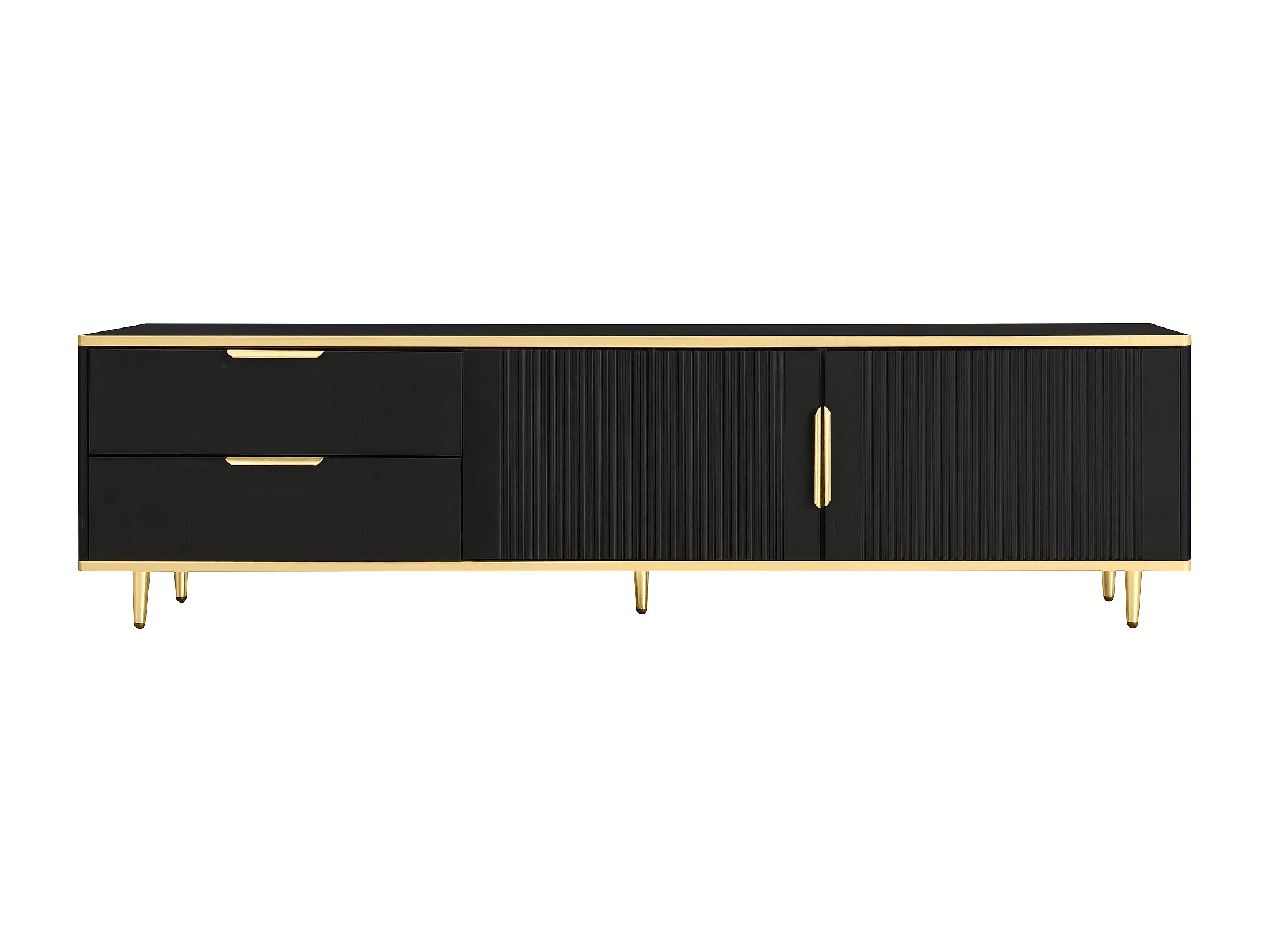 Meuble TV avec 2 portes et 2 tiroirs -poignées et pieds dorés- Noir