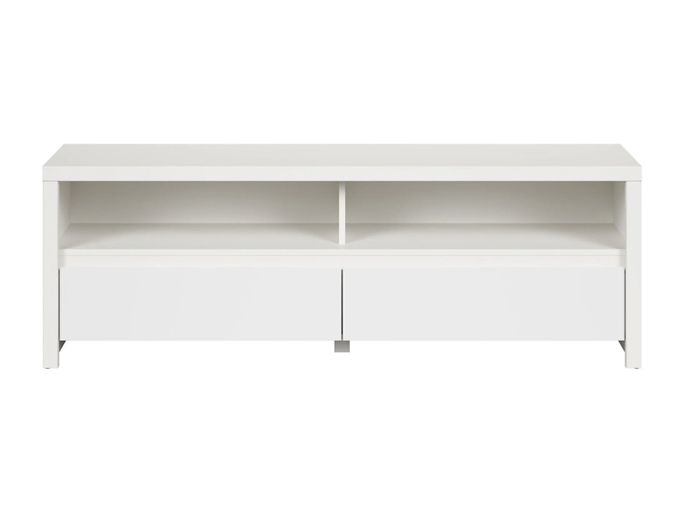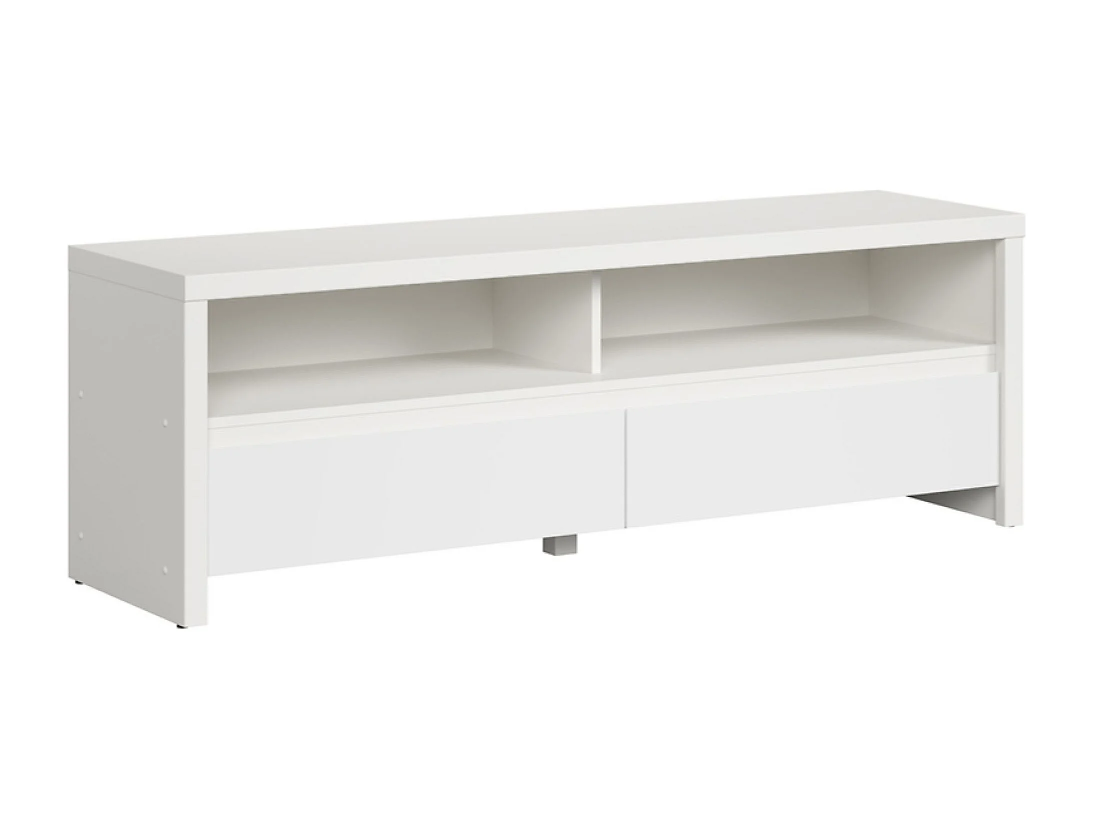 Meuble TV avec 2 tiroirs et une étagère, coloris Blanc/Blanc Mat - Longueur 143,5 x Hauteur 48,5 x Profondeur 40,5 cm