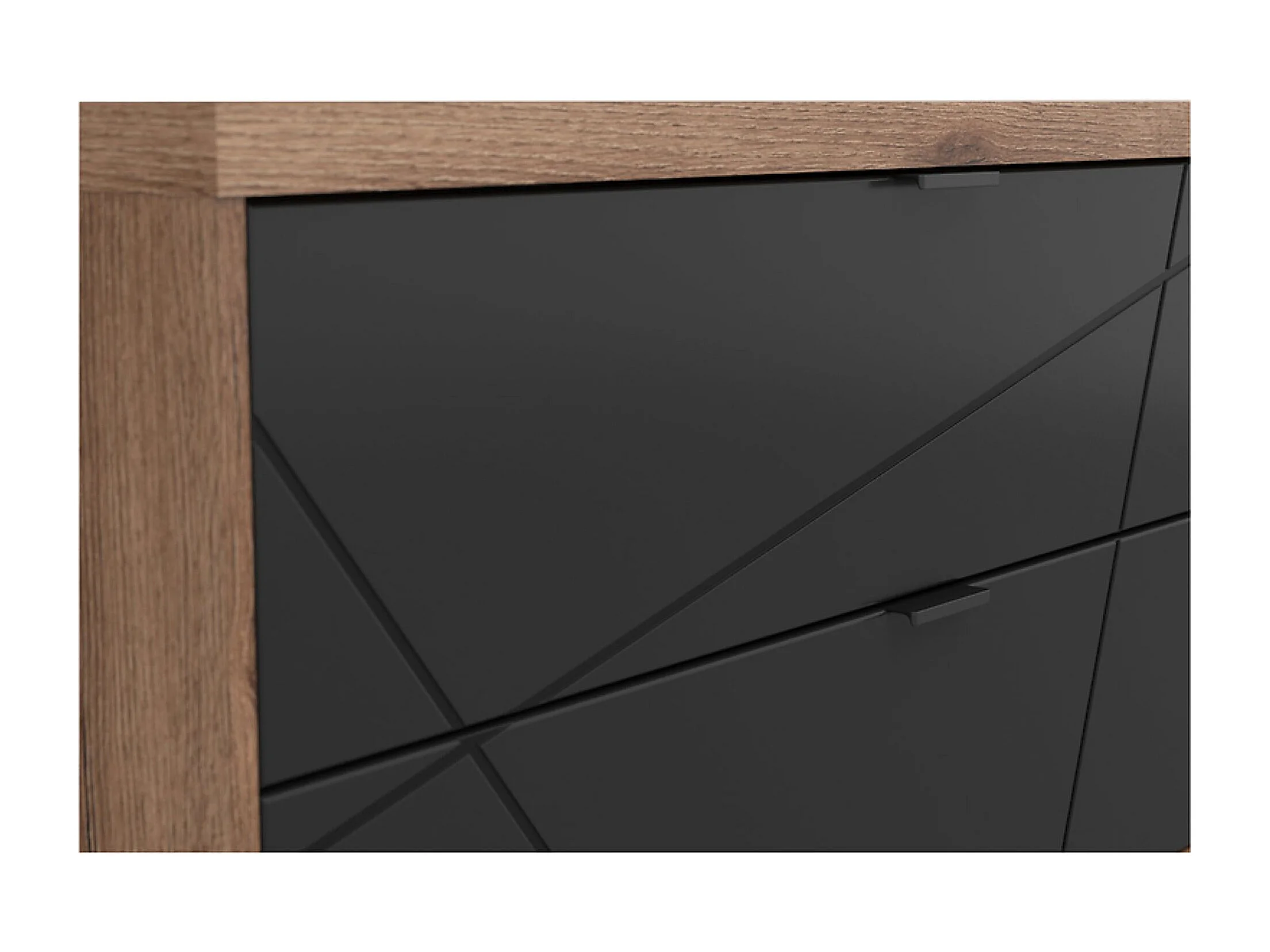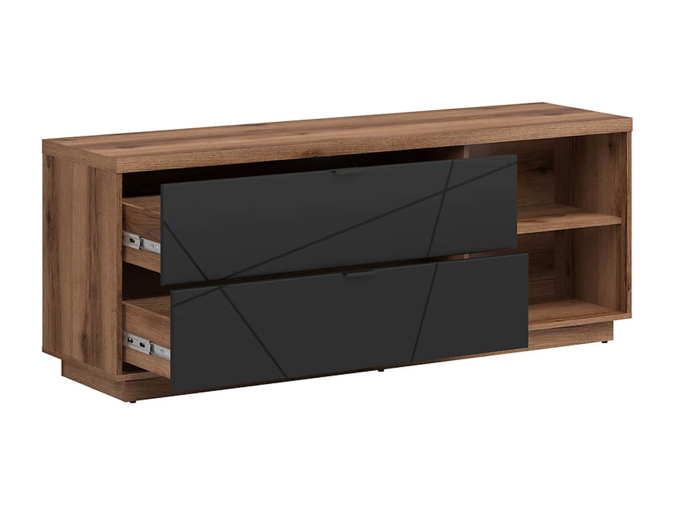 Meuble TV avec 2 tiroirs et une étagère, coloris Chêne delano / Noir mat - Longueur 156 x Profondeur 42,5 x Hauteur 61 cm