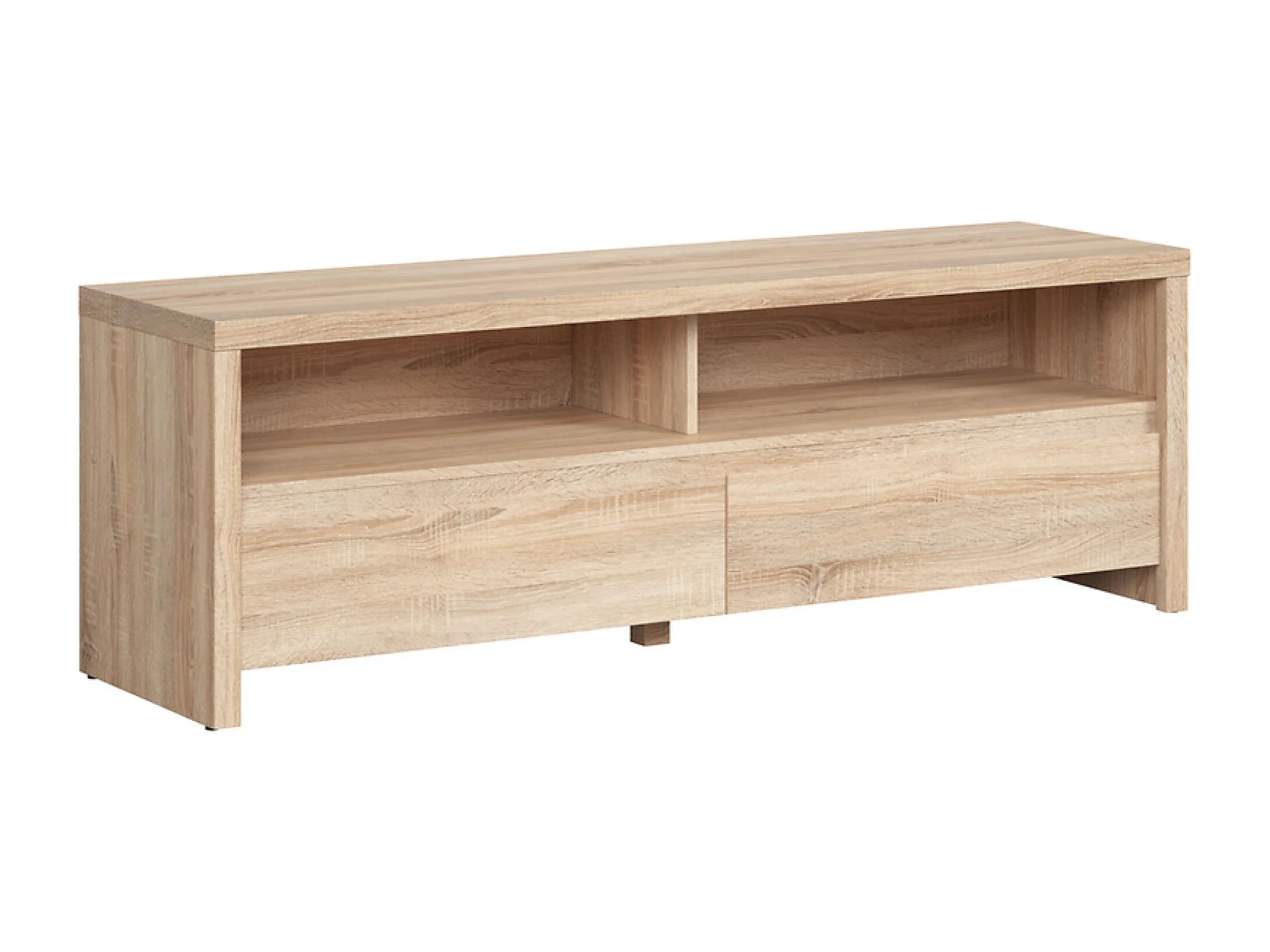 Meuble TV avec 2 tiroirs et une étagère, coloris chêne Sonoma - Longueur 143,5 x Hauteur 48,5 x Profondeur 40,5 cm