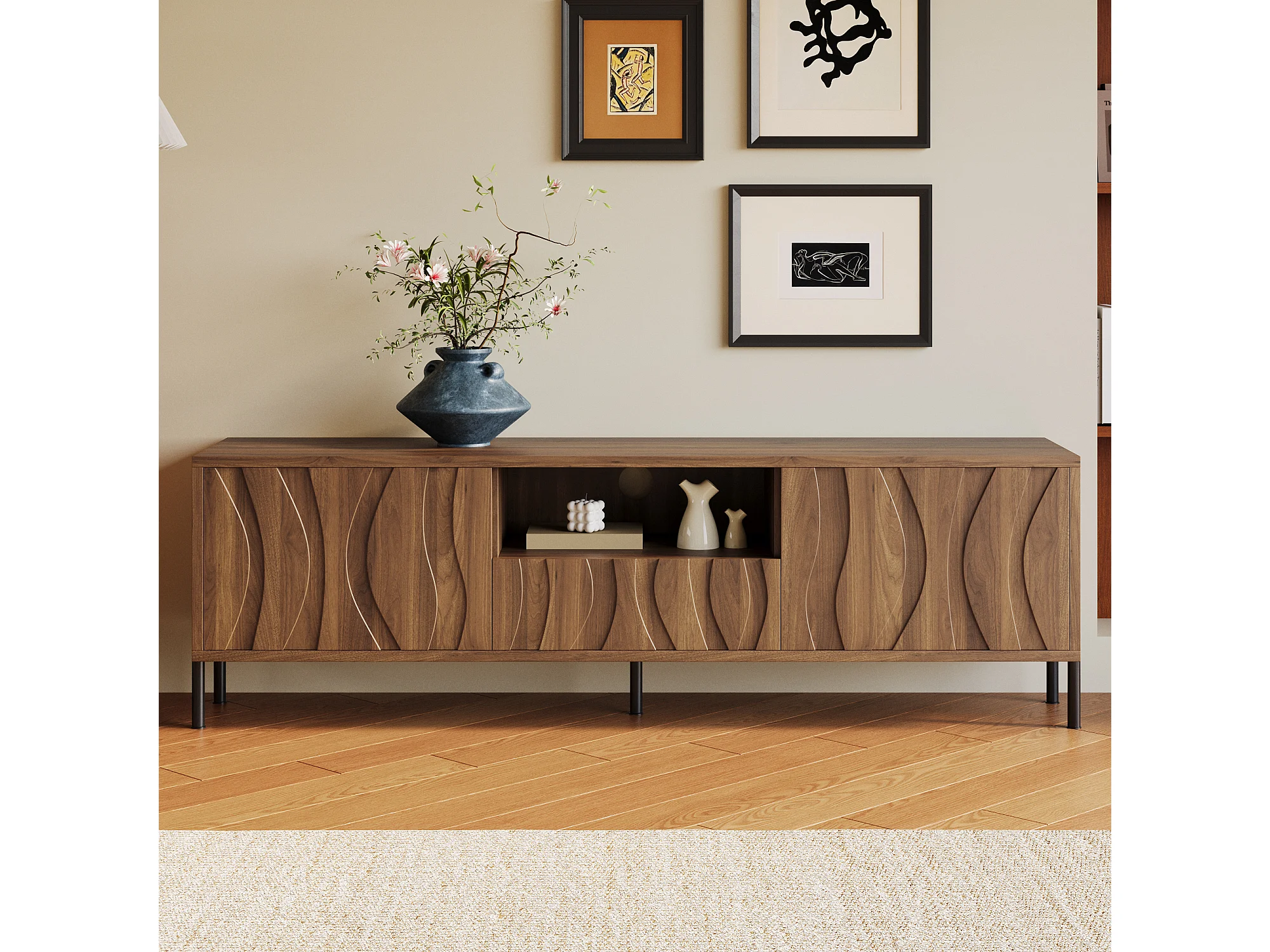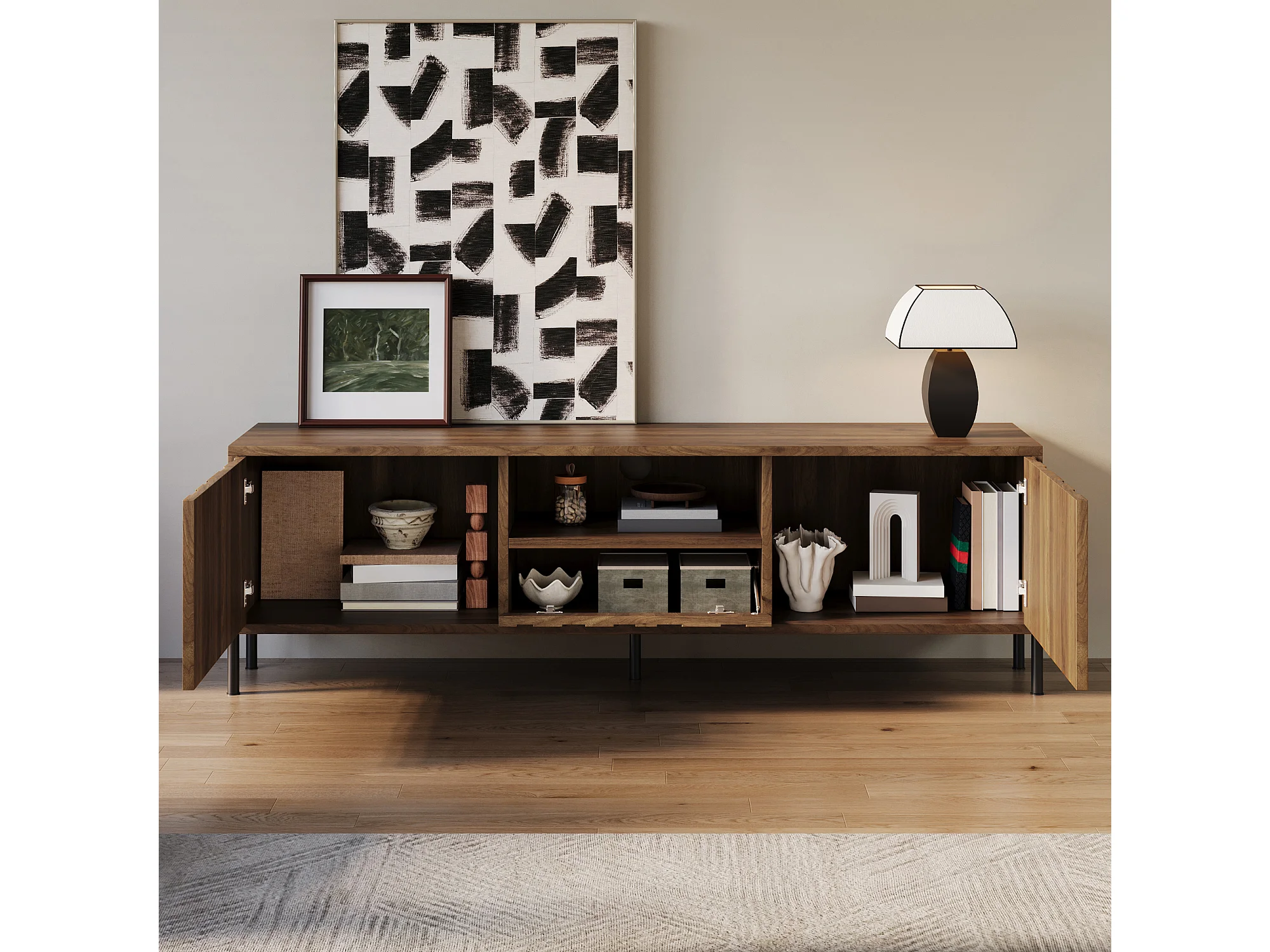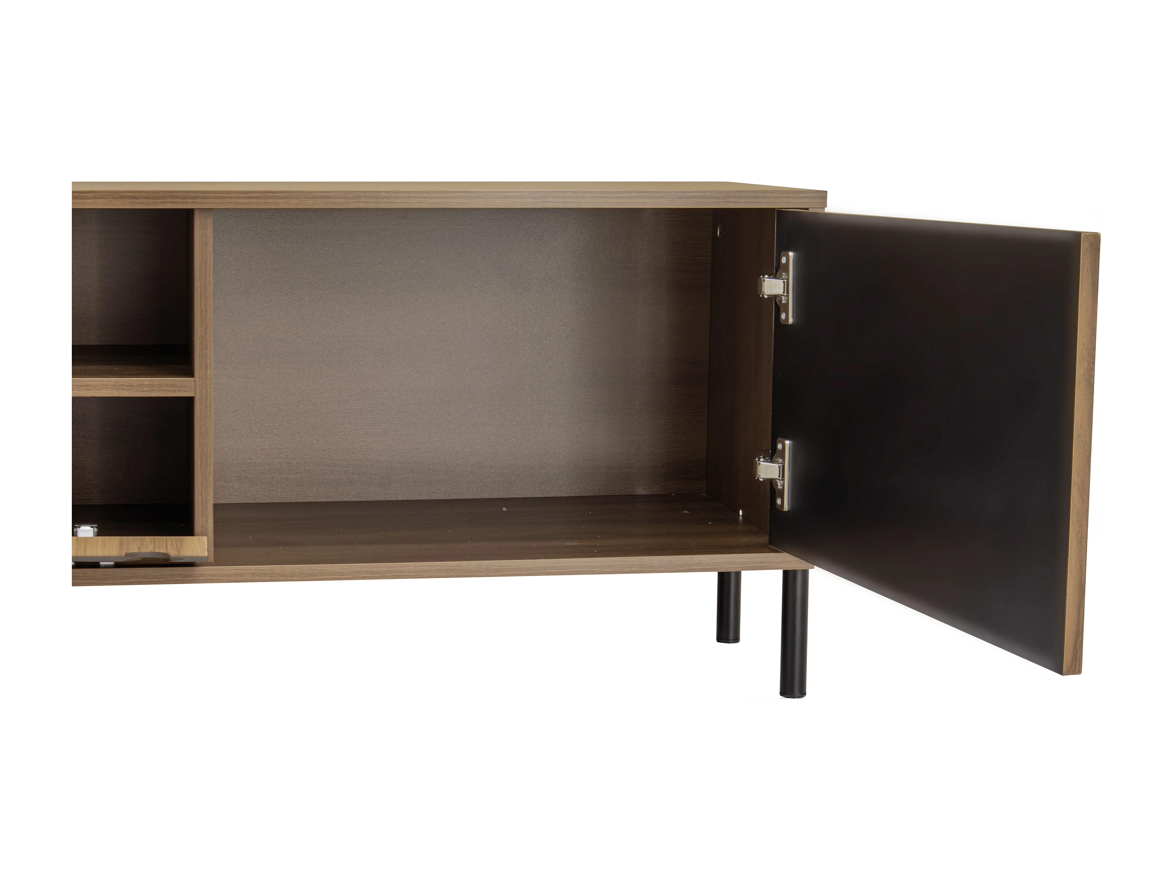 Meuble TV avec 3 portes - Gestion des câbles - Couleur bois foncé