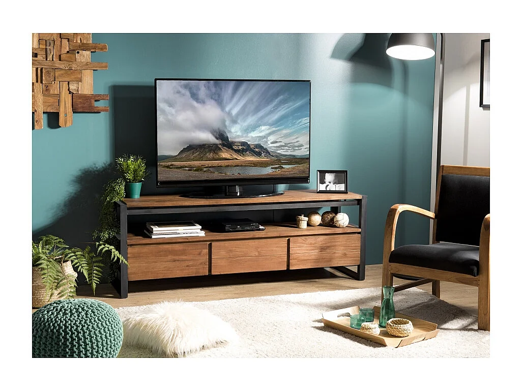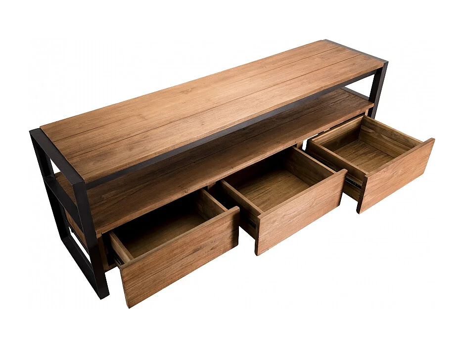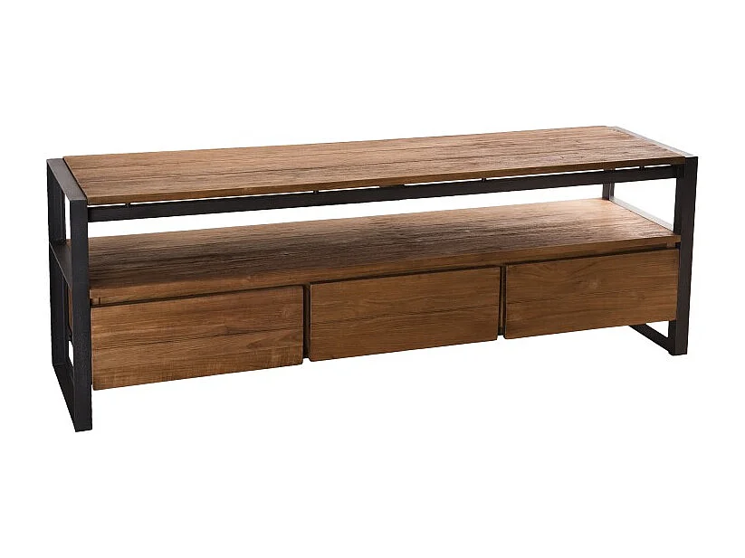 SIXTINE - Meuble TV marron 3 tiroirs 1 étagère en bois de teck recyclé