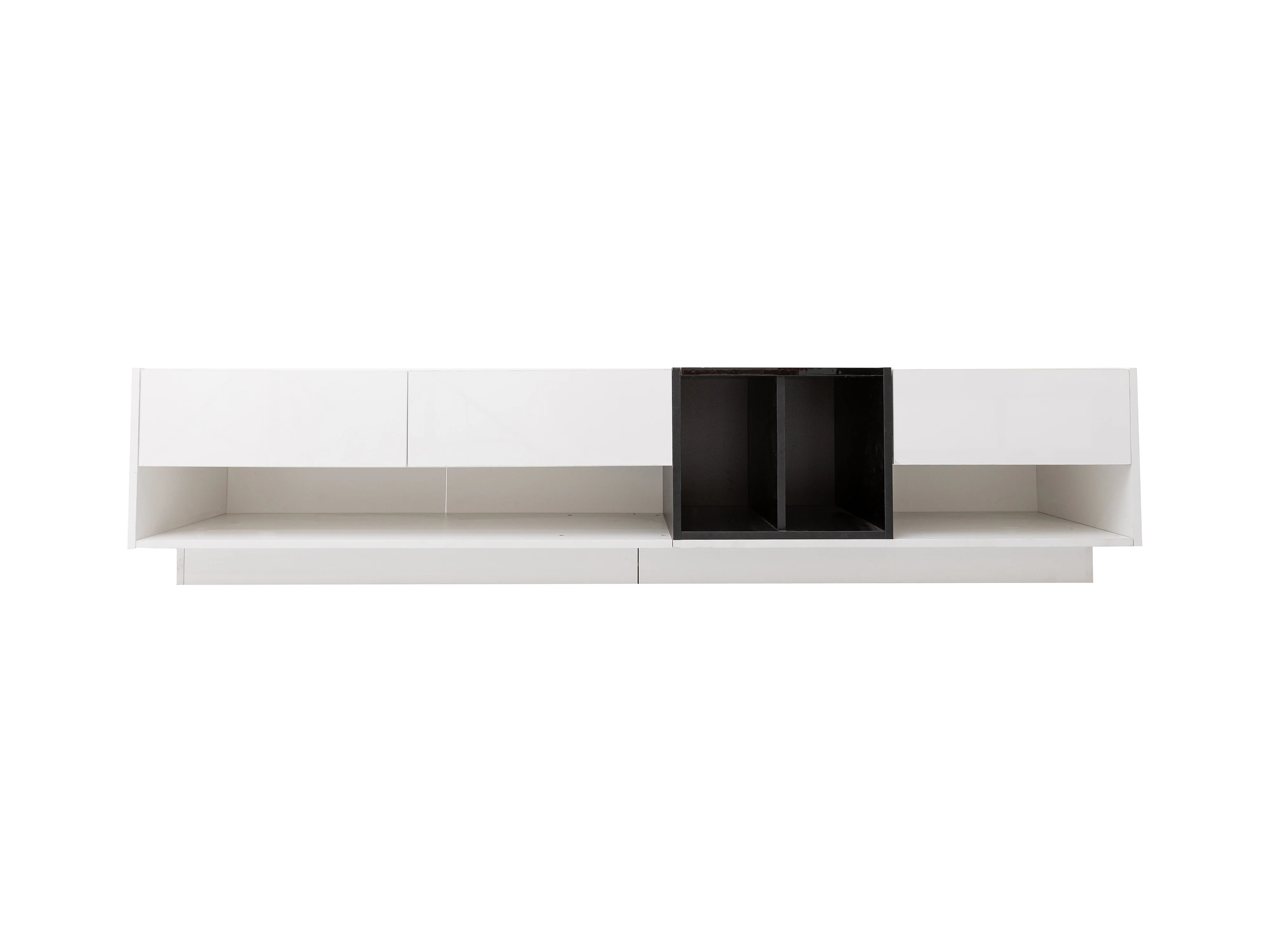 Meuble TV avec 3 tiroirs et 5 niches, corps en blanc et noir laqué