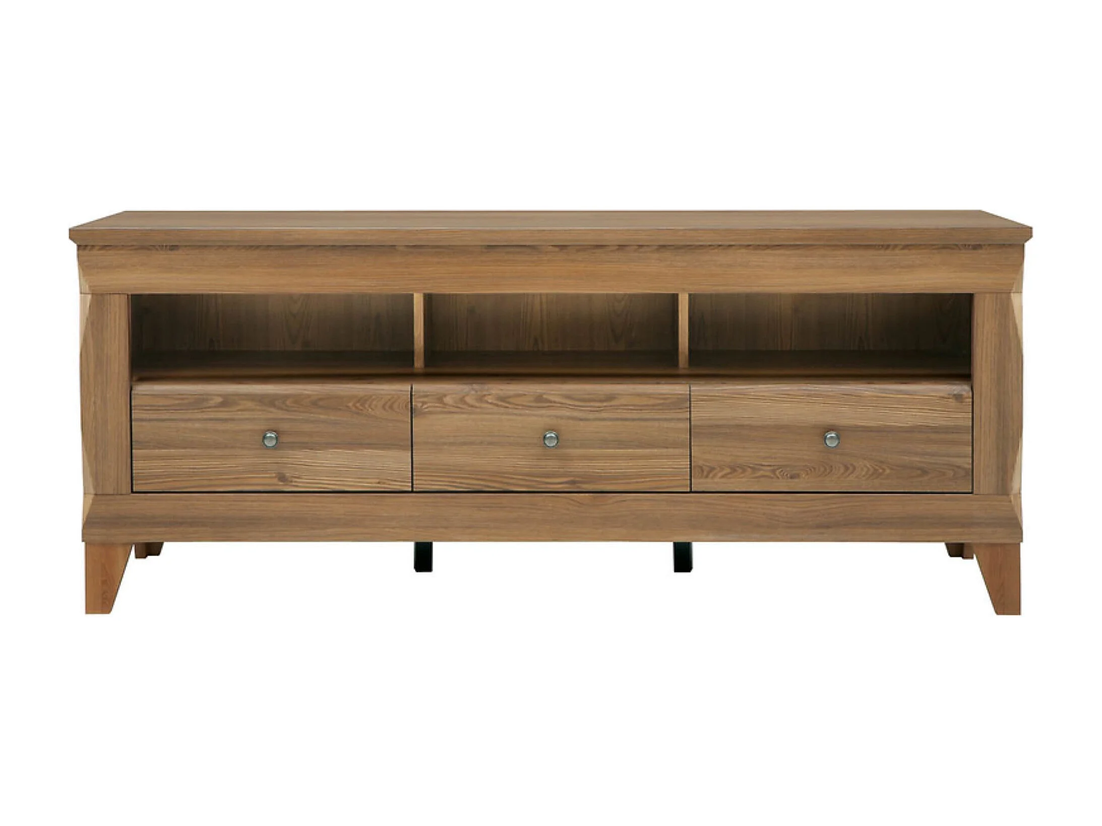 Meuble TV avec 3 tiroirs soft-close et une étagère coloris Mélèze doré - Longueur 156 x Profondeur 47 x Hauteur 64 cm